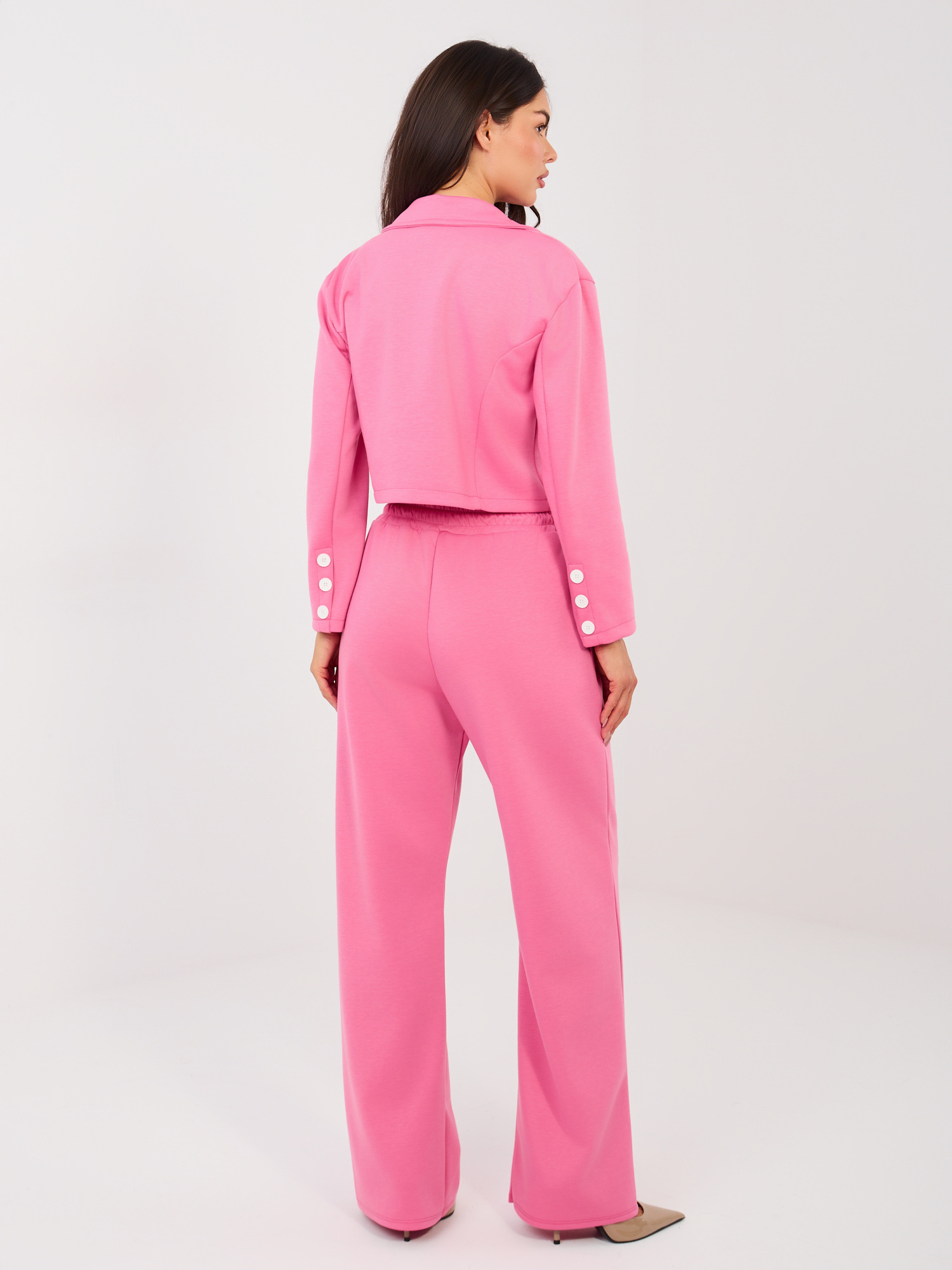 Ciemnoróżowy komplet z prostymi spodniami RUE PARIS .