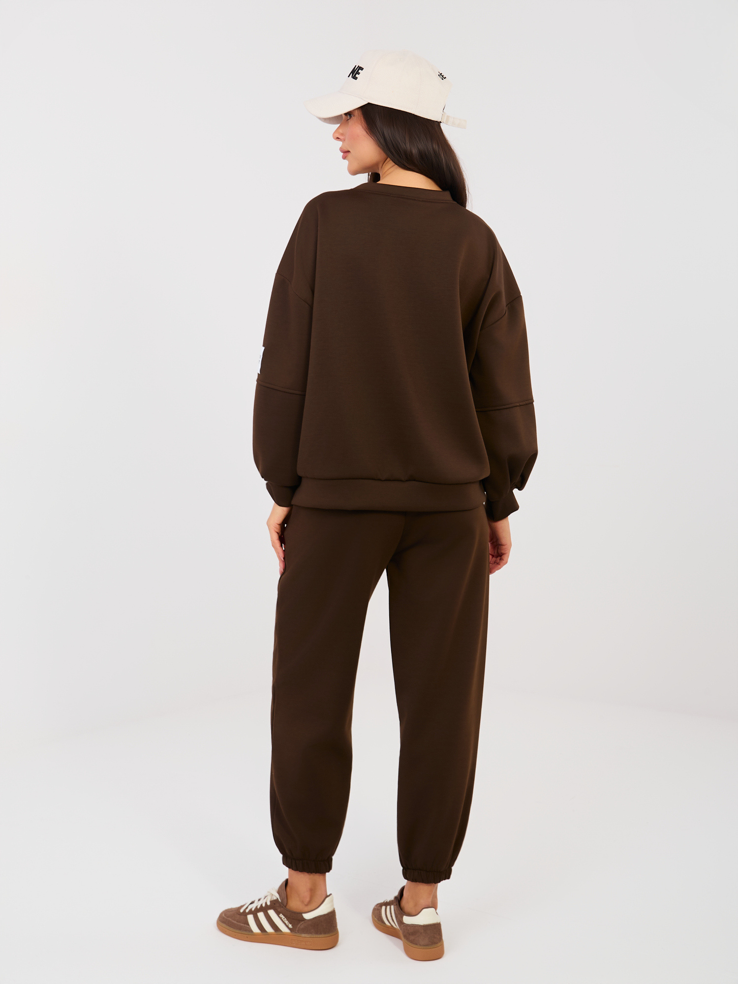 Czekoladowy dwuczęściowy komplet z bluzą oversize