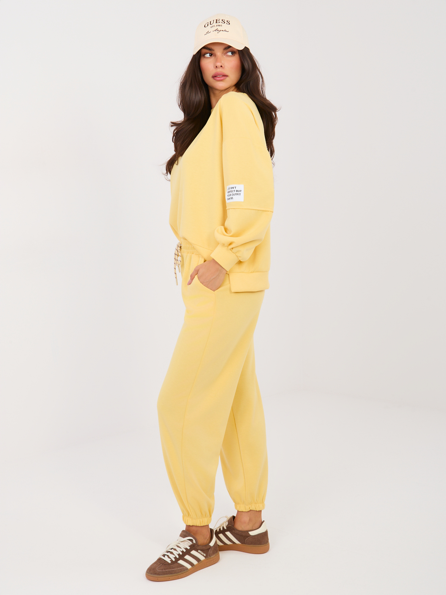 Żółty dresowy komplet z bluzą bez kaptura