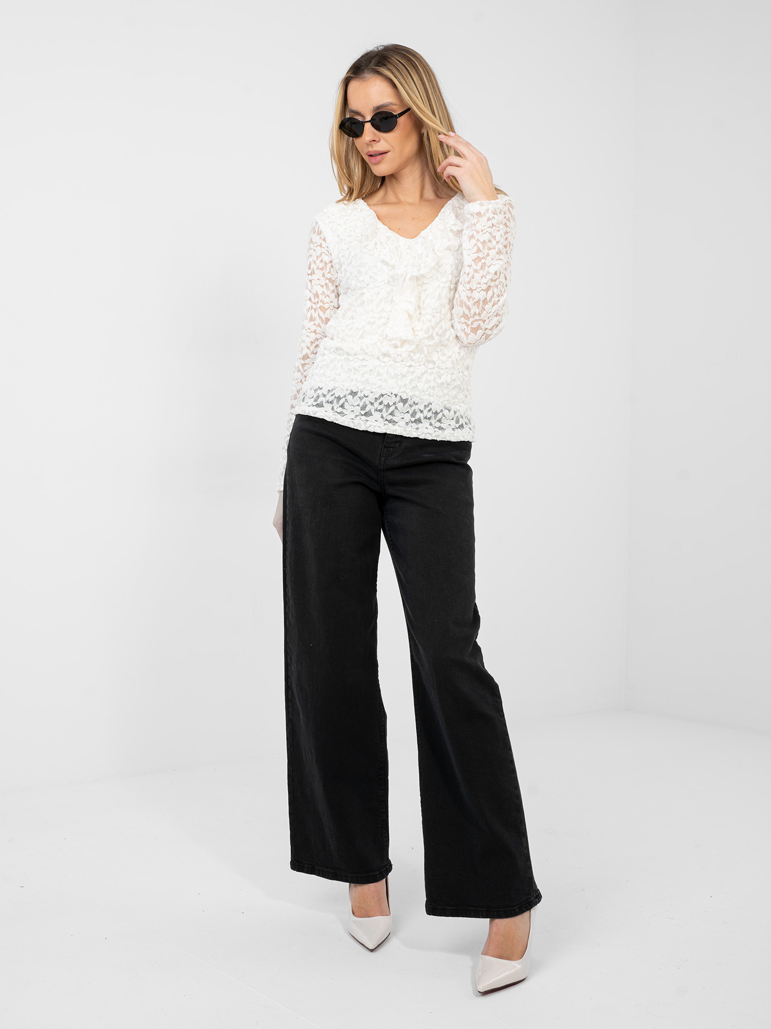 Ecru dopasowana bluzka z koronki RUE PARIS .