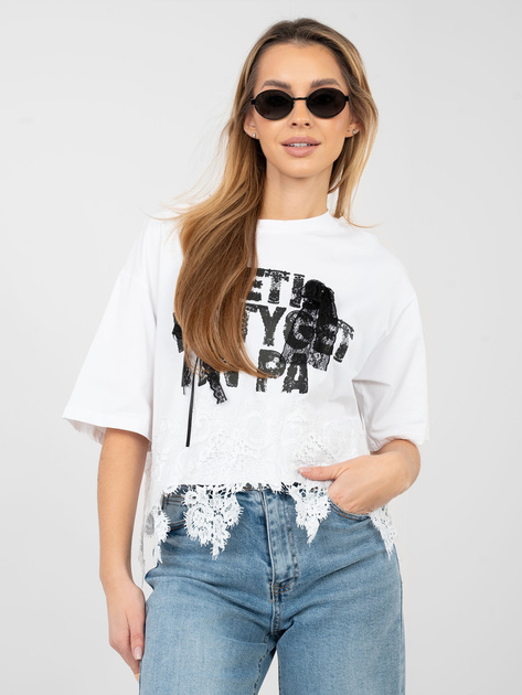 Biała bawełniana bluzka z napisami .