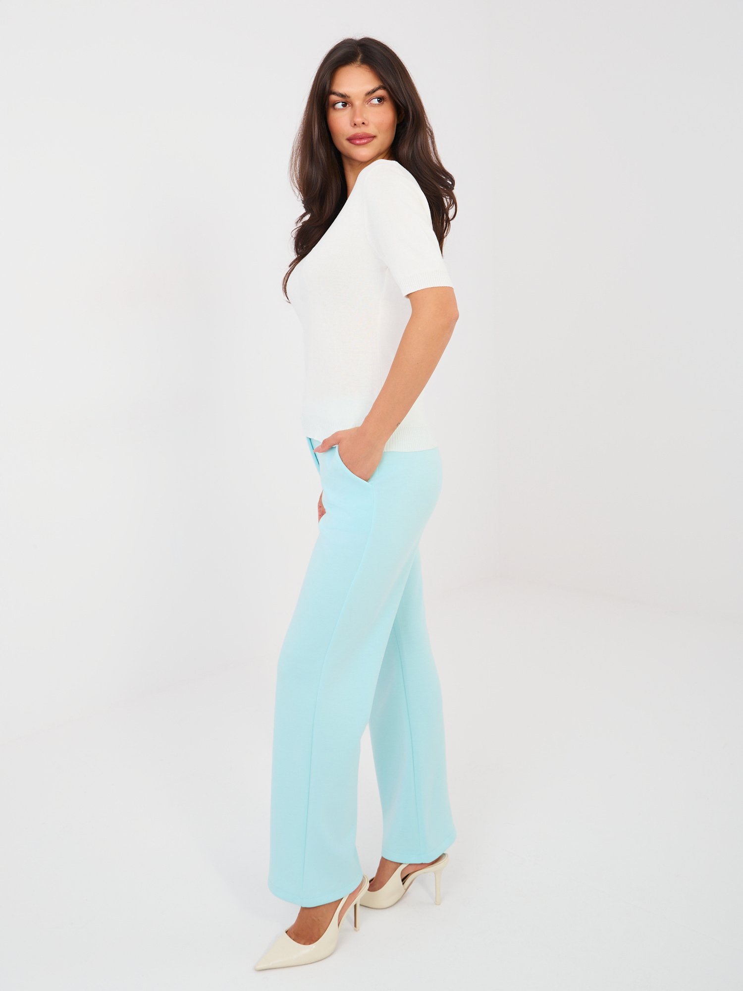 Miętowe proste spodnie z kieszeniami RUE PARIS .