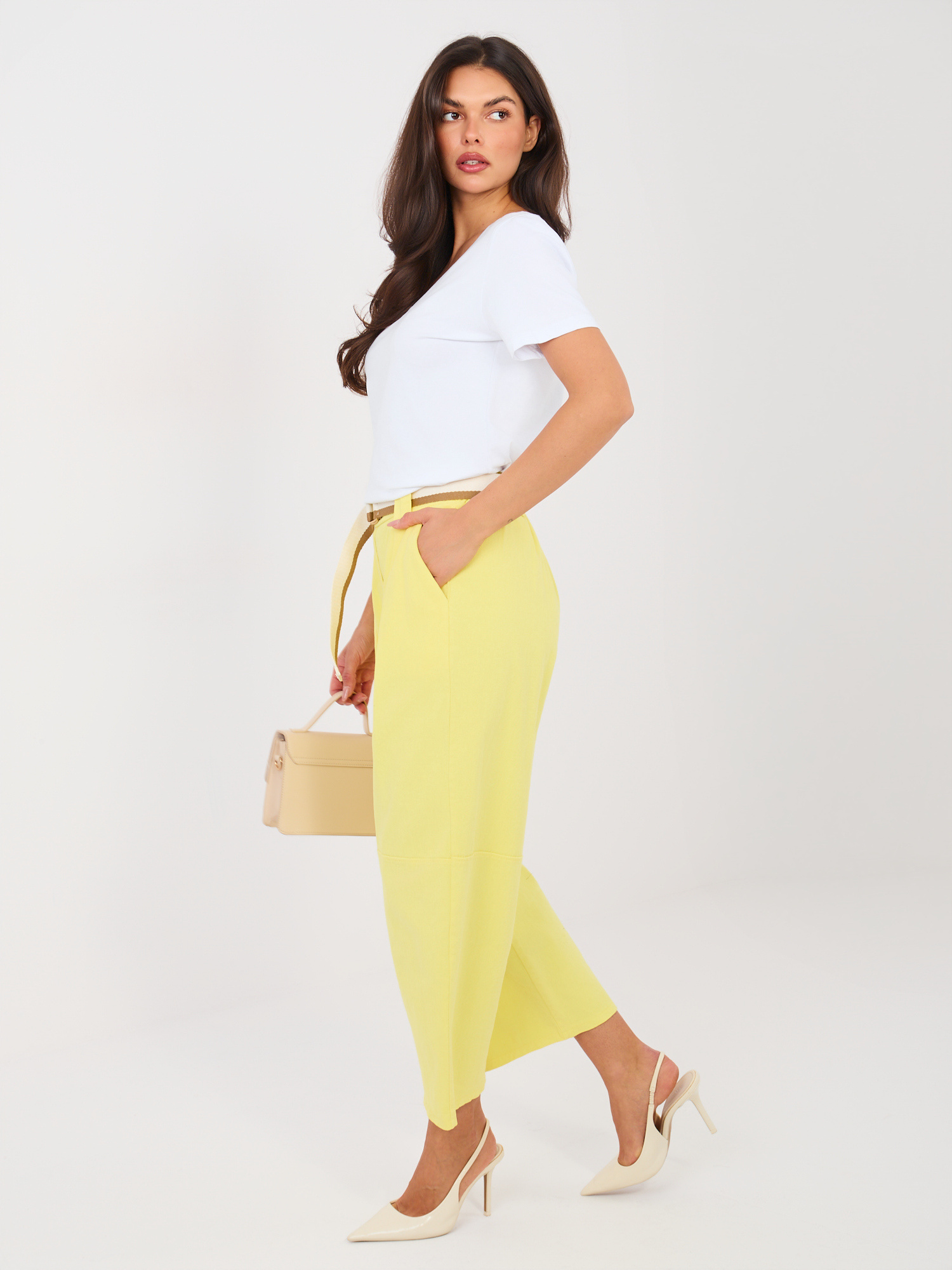 Jasnożółte damskie jeansy z nogawką 7/8 RUE PARIS .