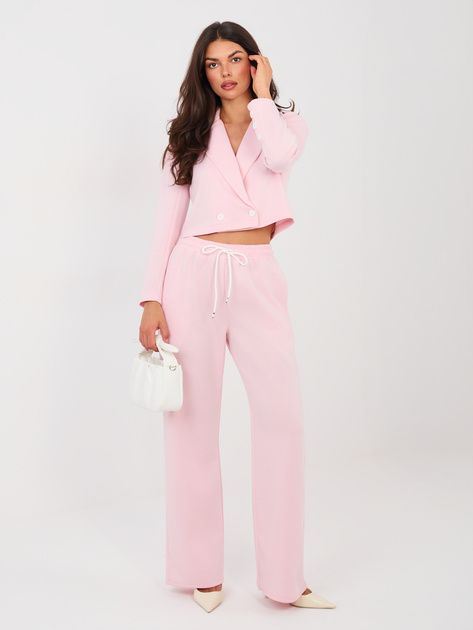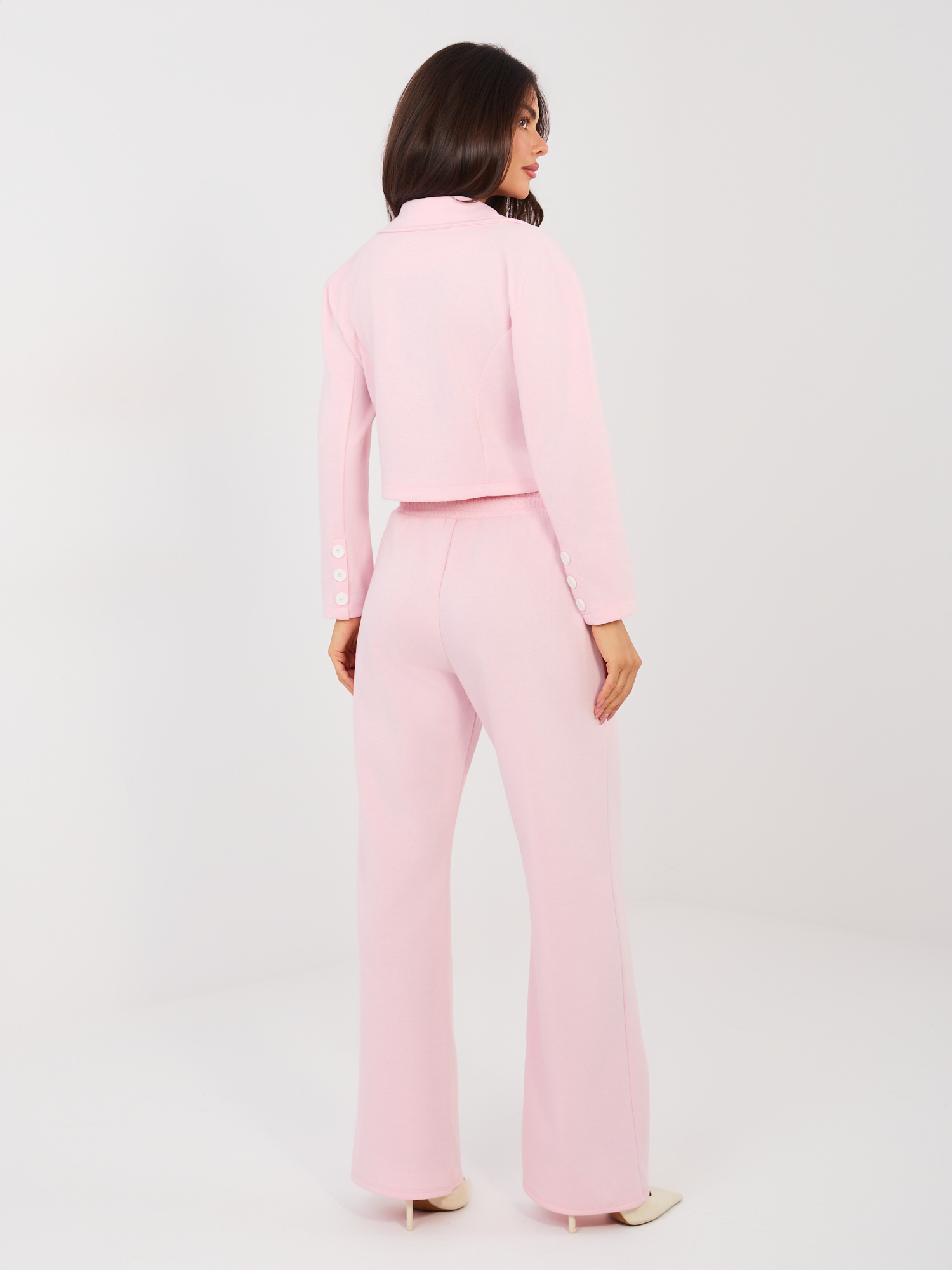 Jasnoróżowy komplet z dwurzędową marynarką RUE PARIS .