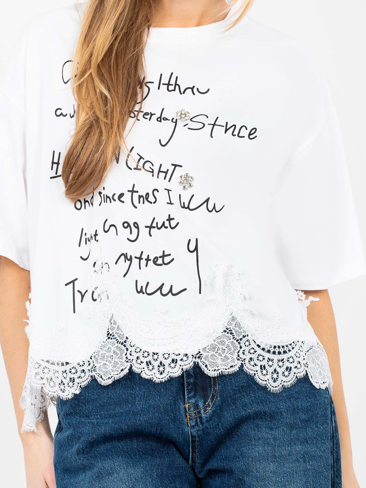 Biała bawełniana bluzka z koronką
