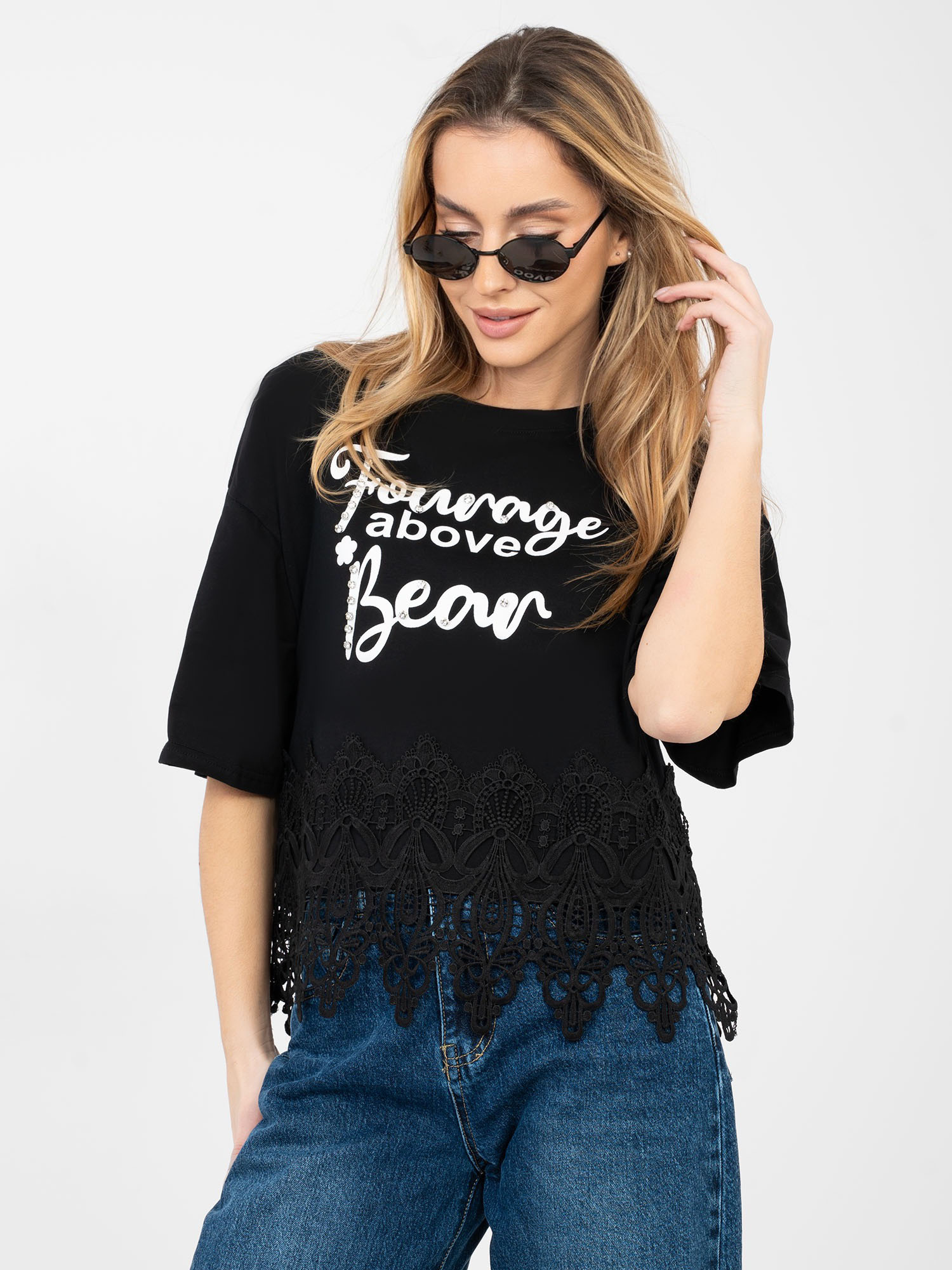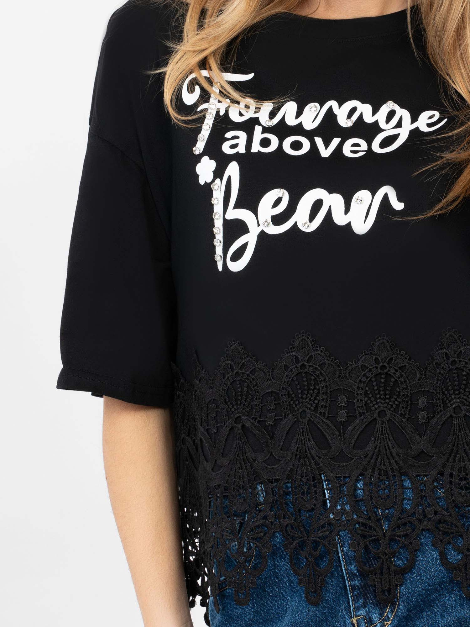 Czarna bawełniana bluzka z napisami
