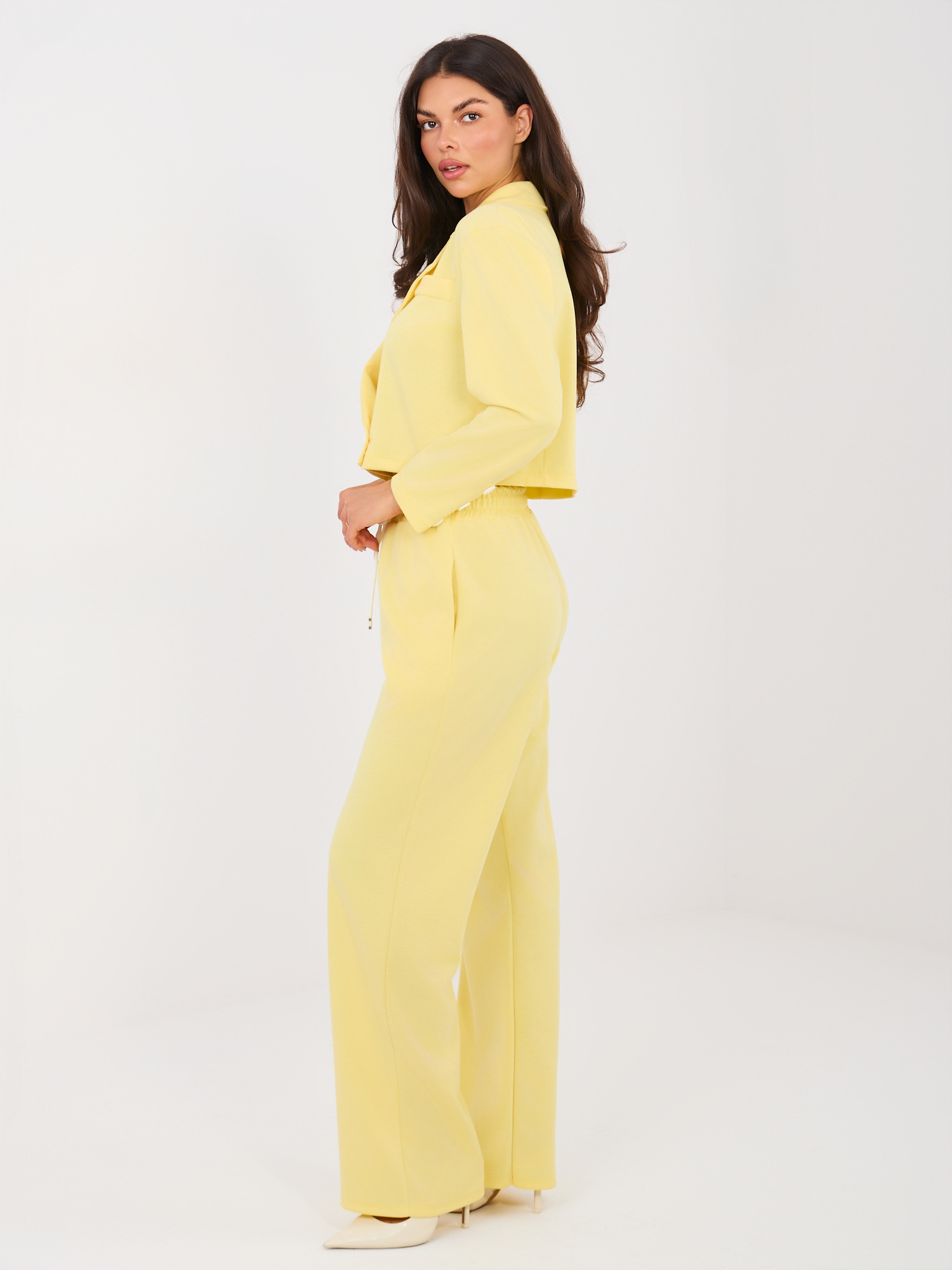 Jasnożółty dwuczęściowy komplet z marynarką RUE PARIS .