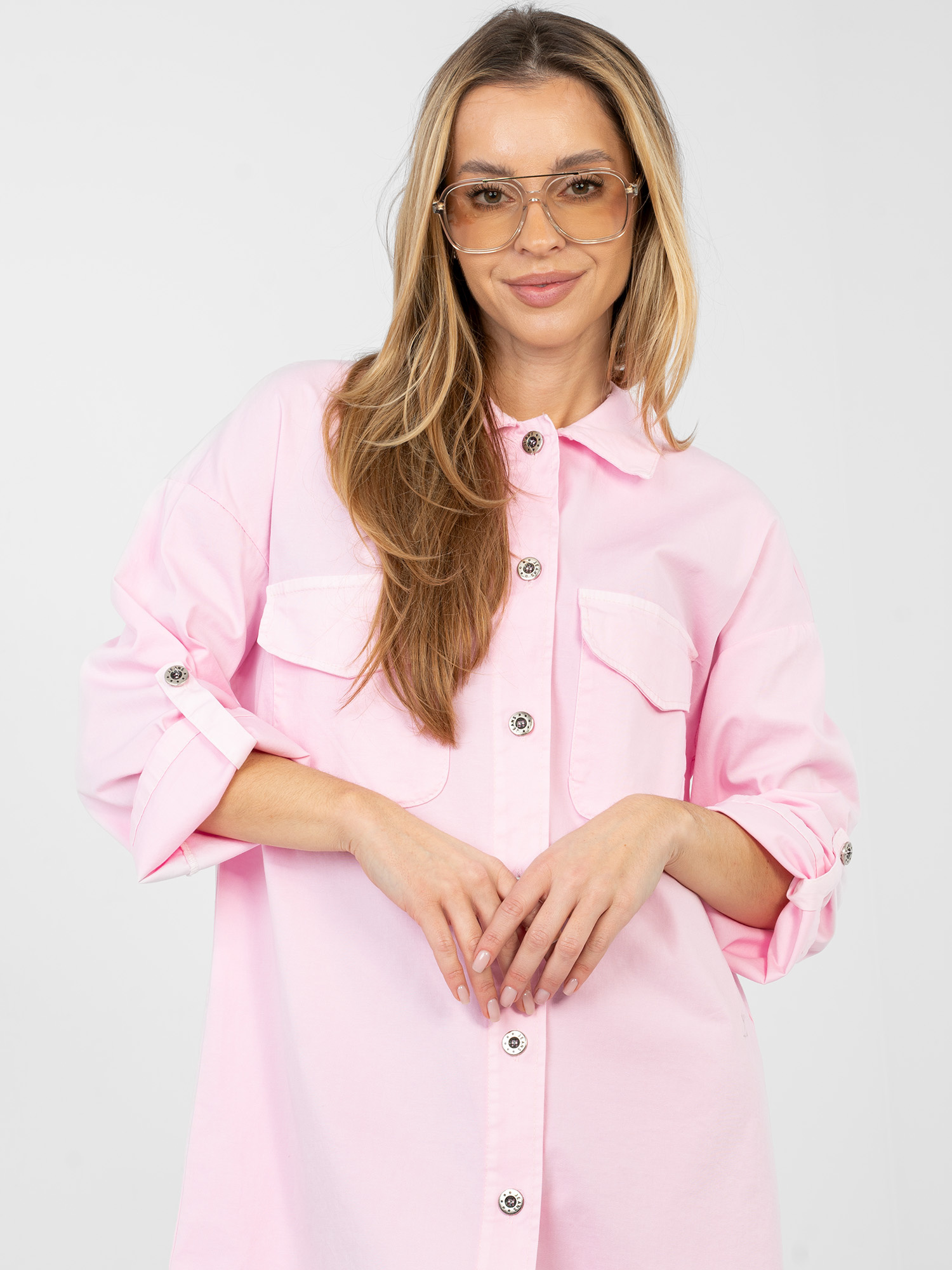 Jasnoróżowa casualowa sukienka szmizjerka RUE PARIS .