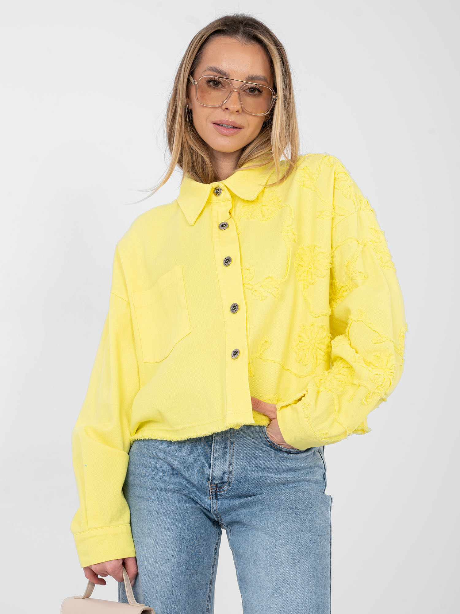 Żółta jeansowa kurtka oversize RUE PARIS .