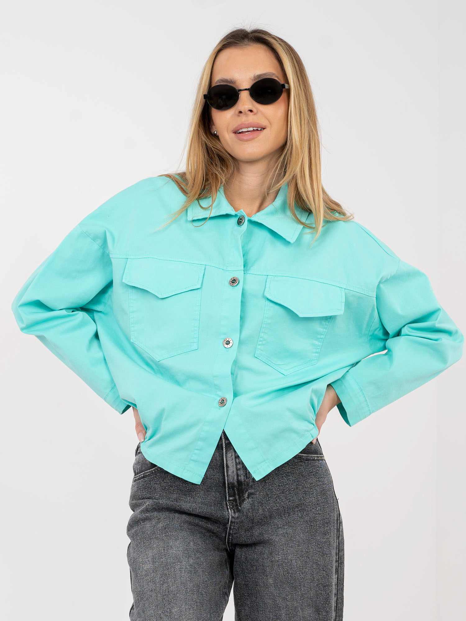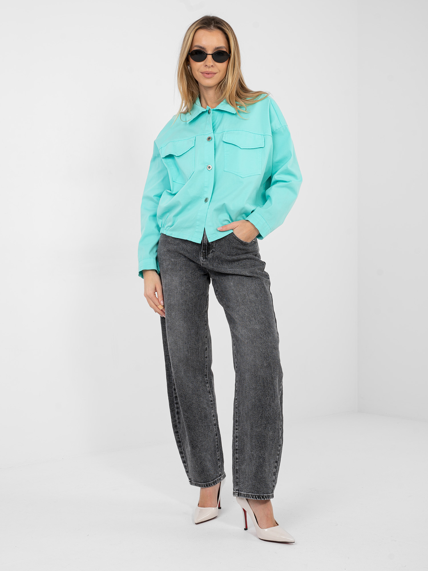 Turkusowa koszula oversize z kieszeniami RUE PARIS .