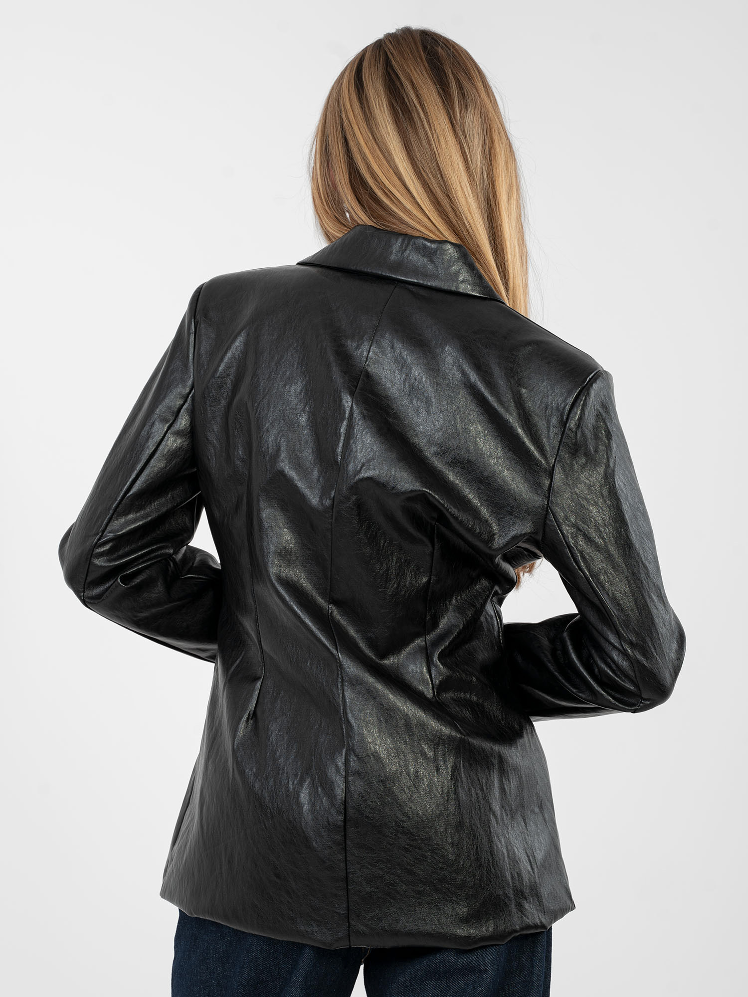 Czarna taliowana marynarka z ekoskóry RUE PARIS .