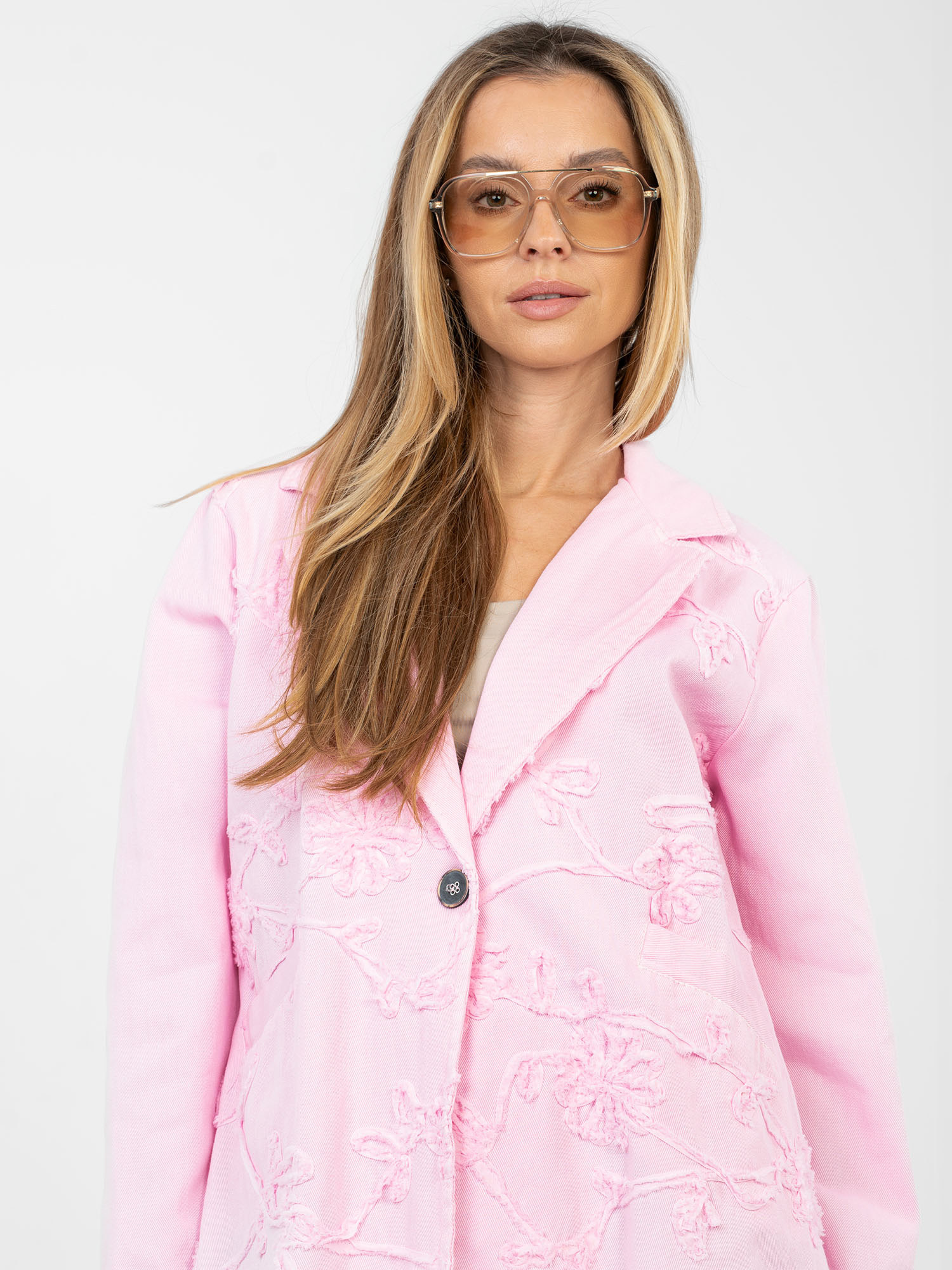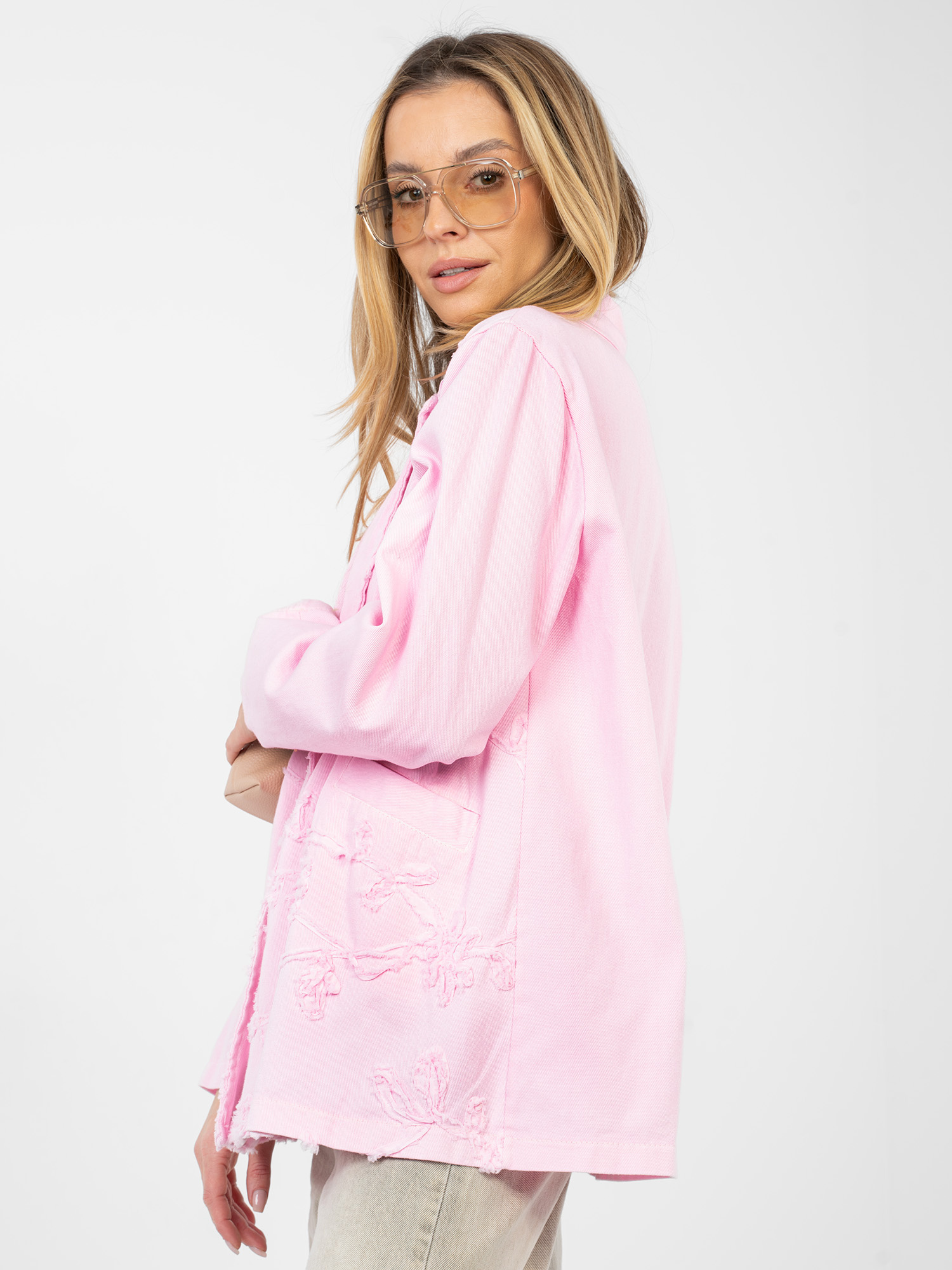 Jasnoróżowa jeansowa marynarka z bawełny RUE PARIS .