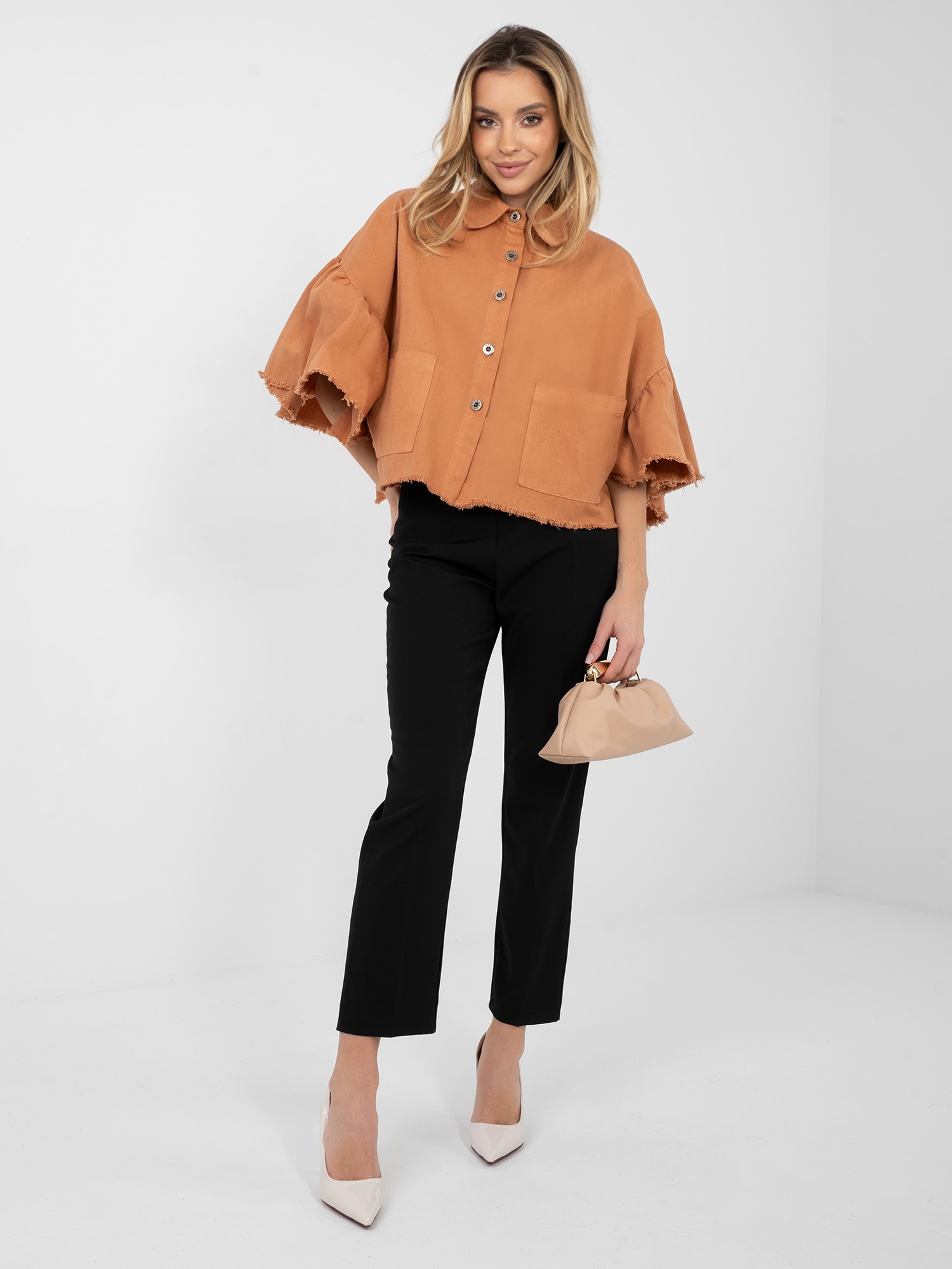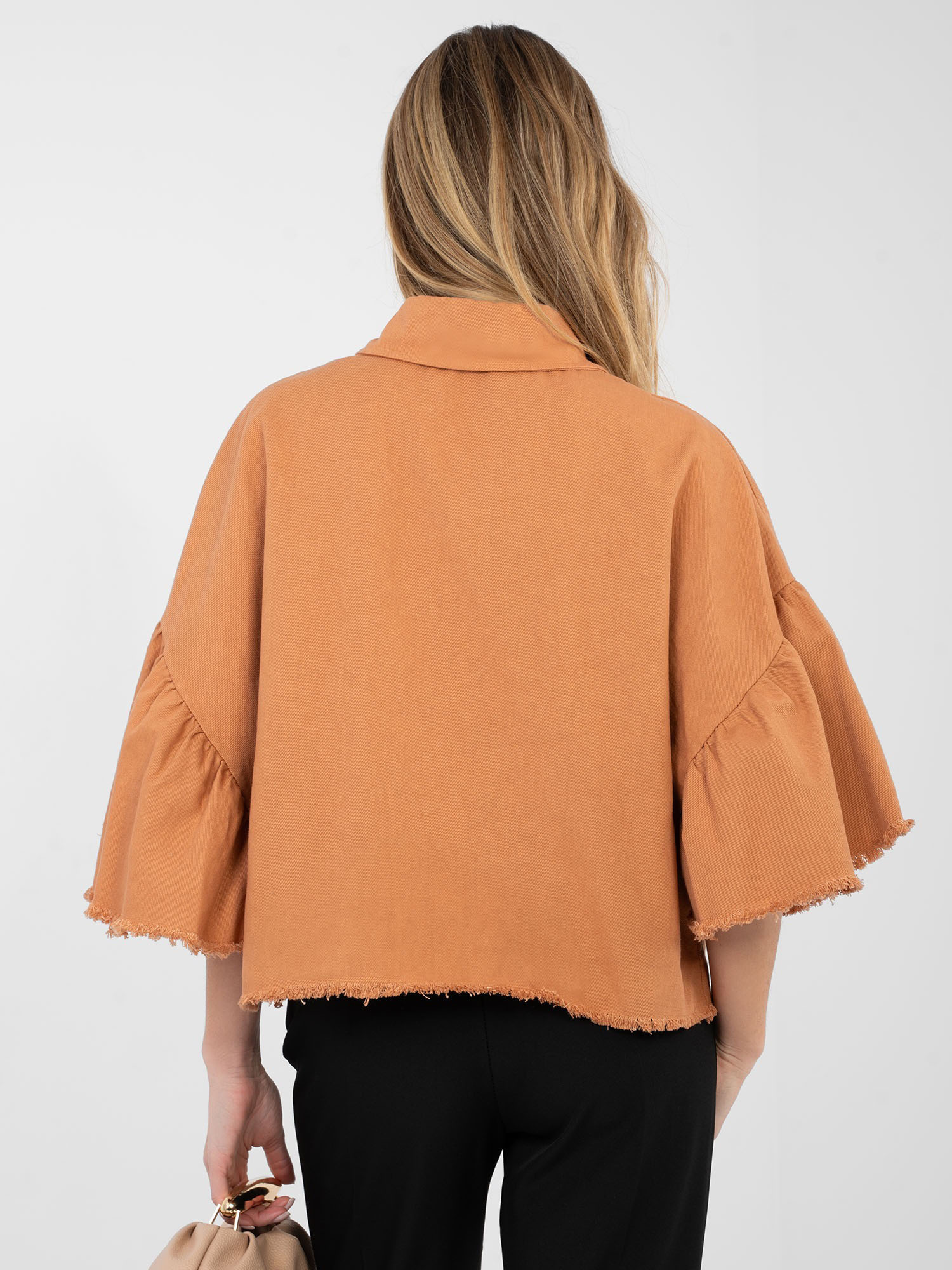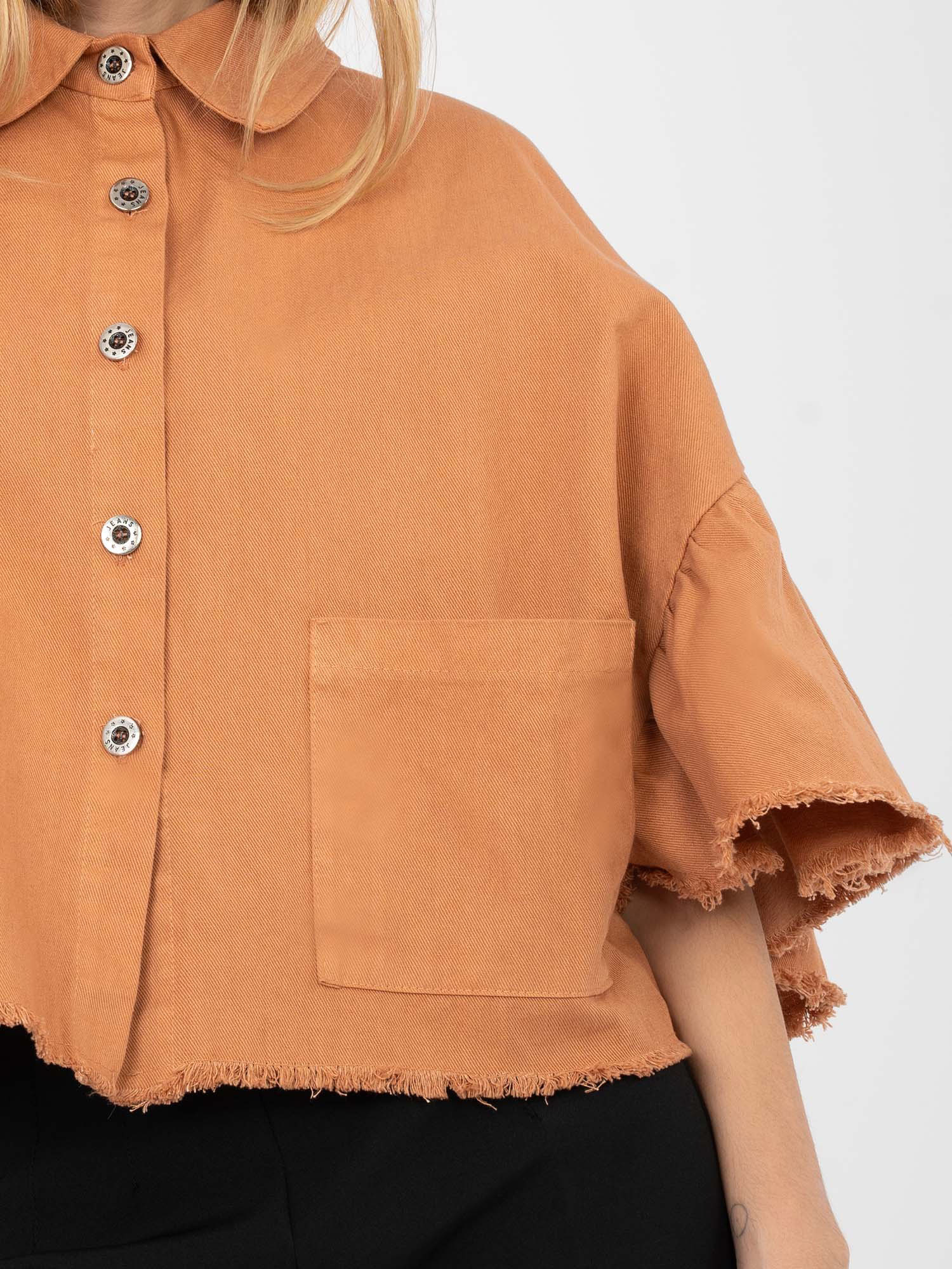 Ceglasta jeansowa kurtka z rękawem 3/4 RUE PARIS .