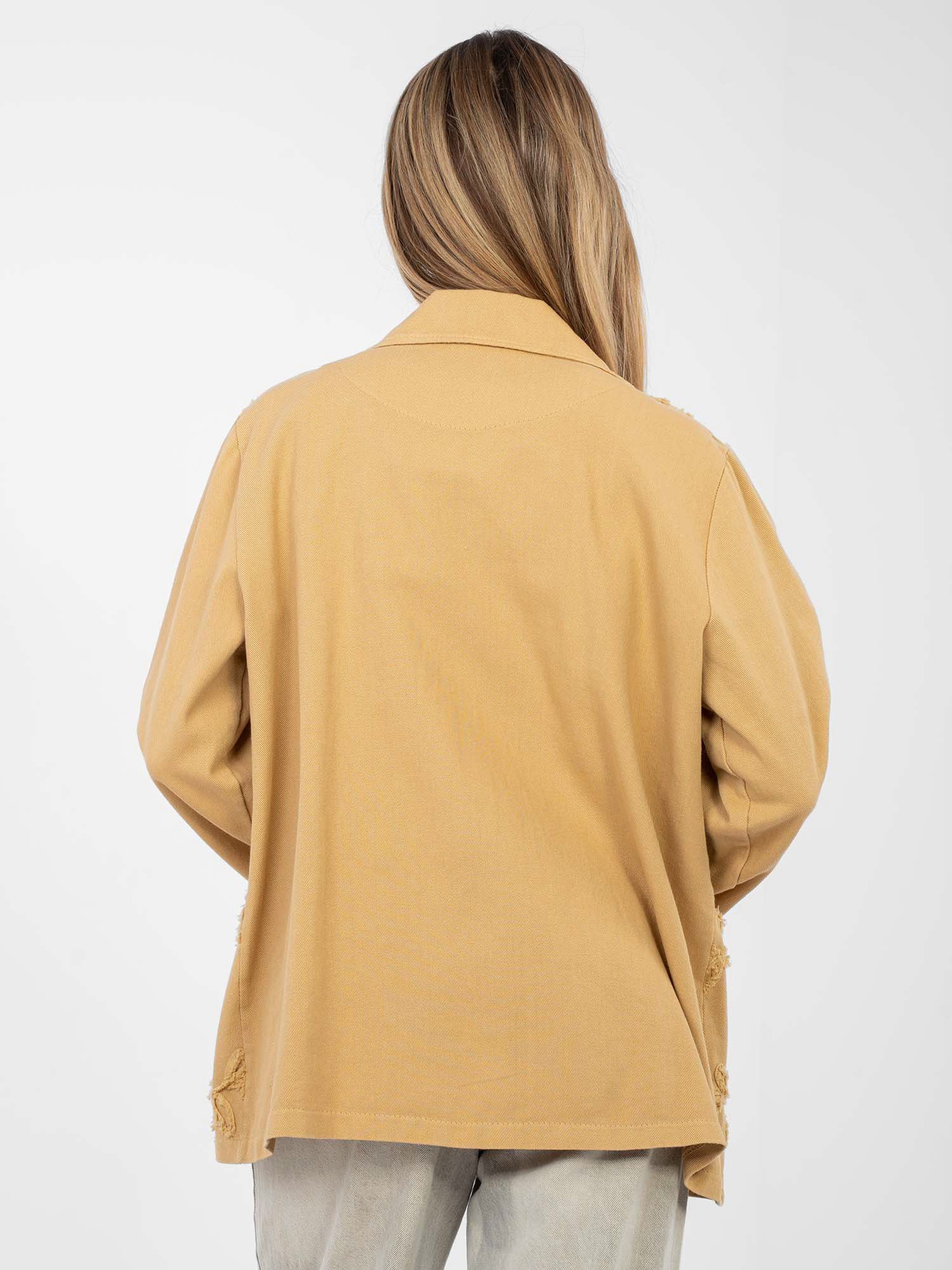 Camelowa jeansowa marynarka z aplikacją 3D RUE PARIS .