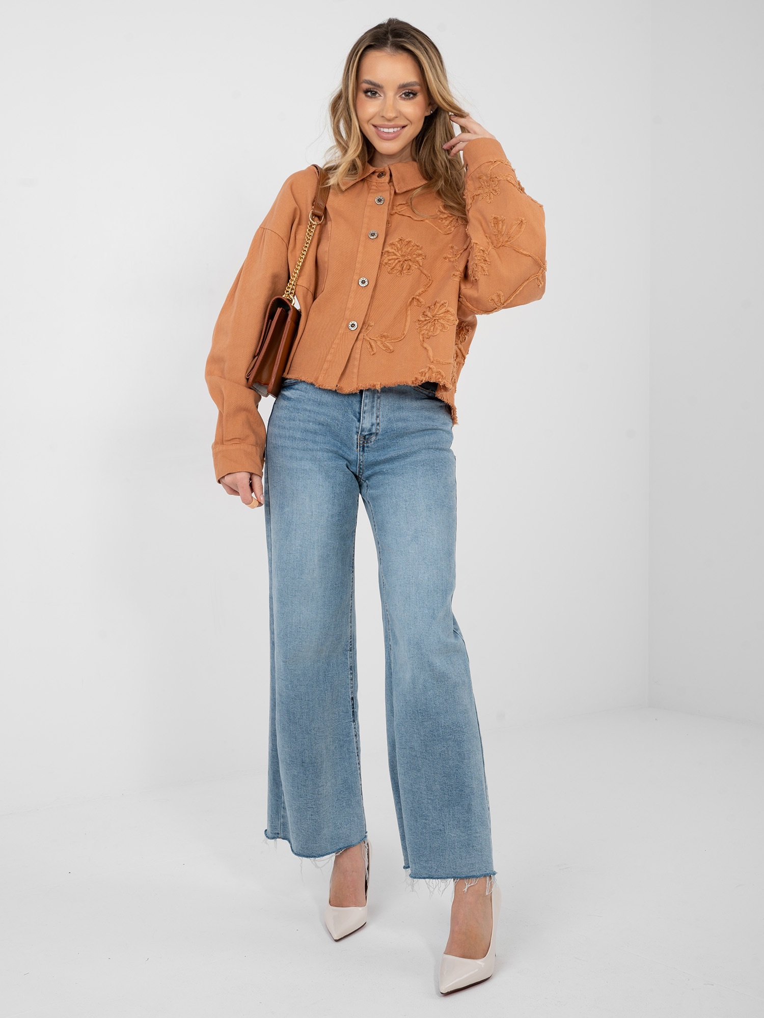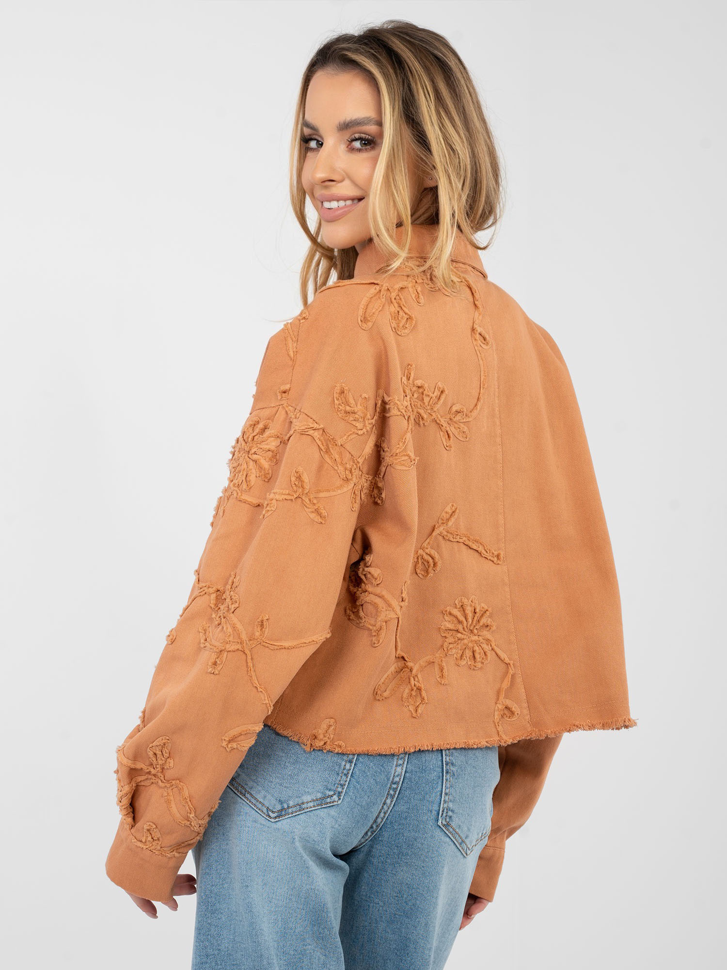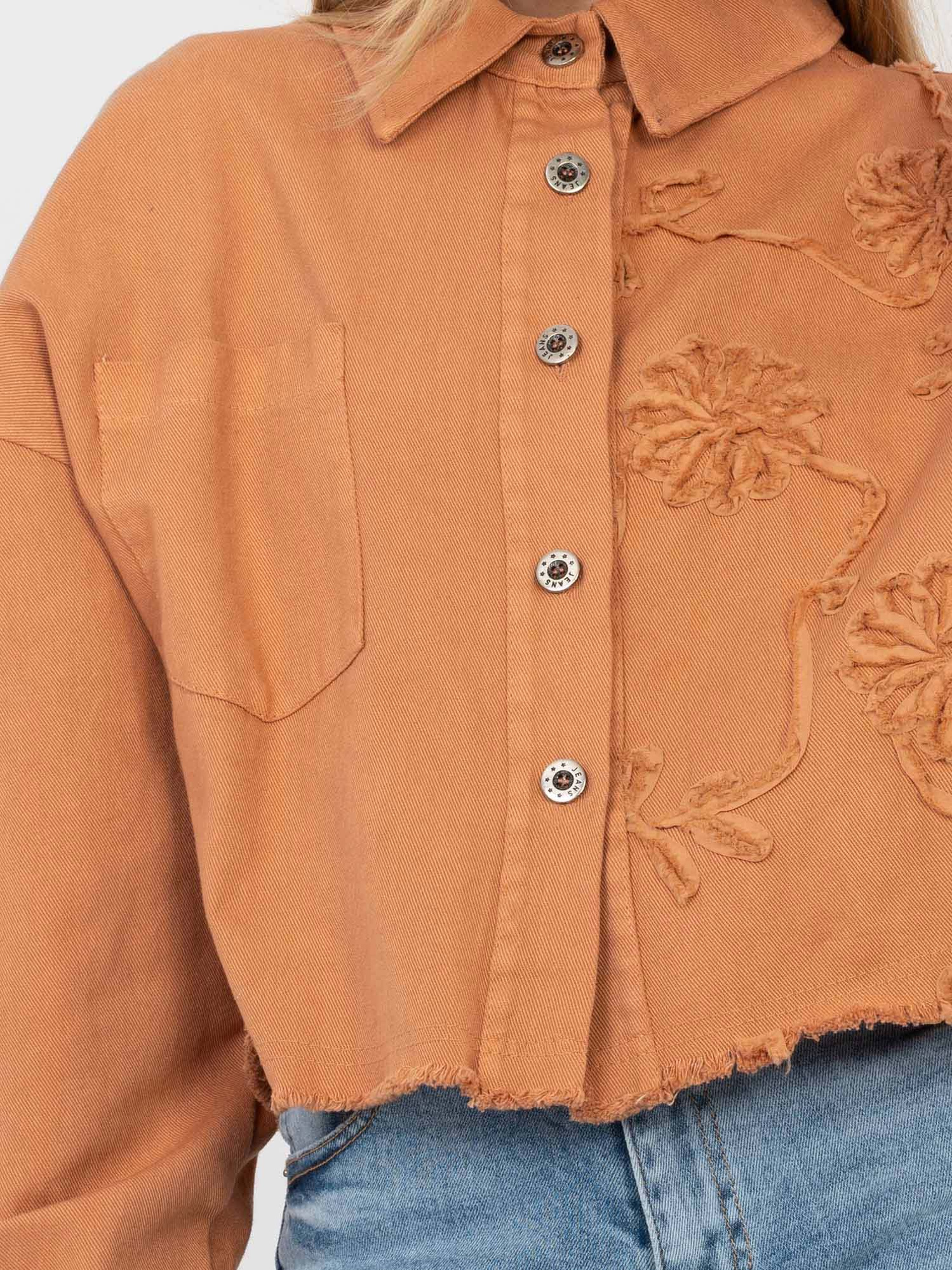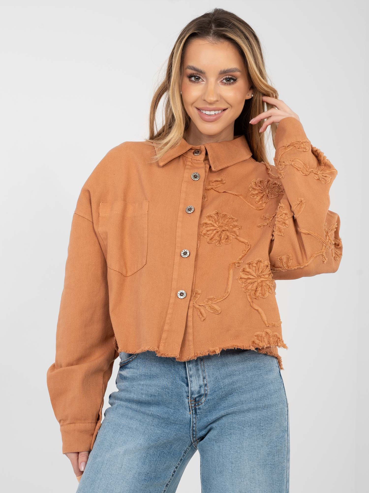 Ceglasta jeansowa kurtka z zapięciem na guziki RUE PARIS .