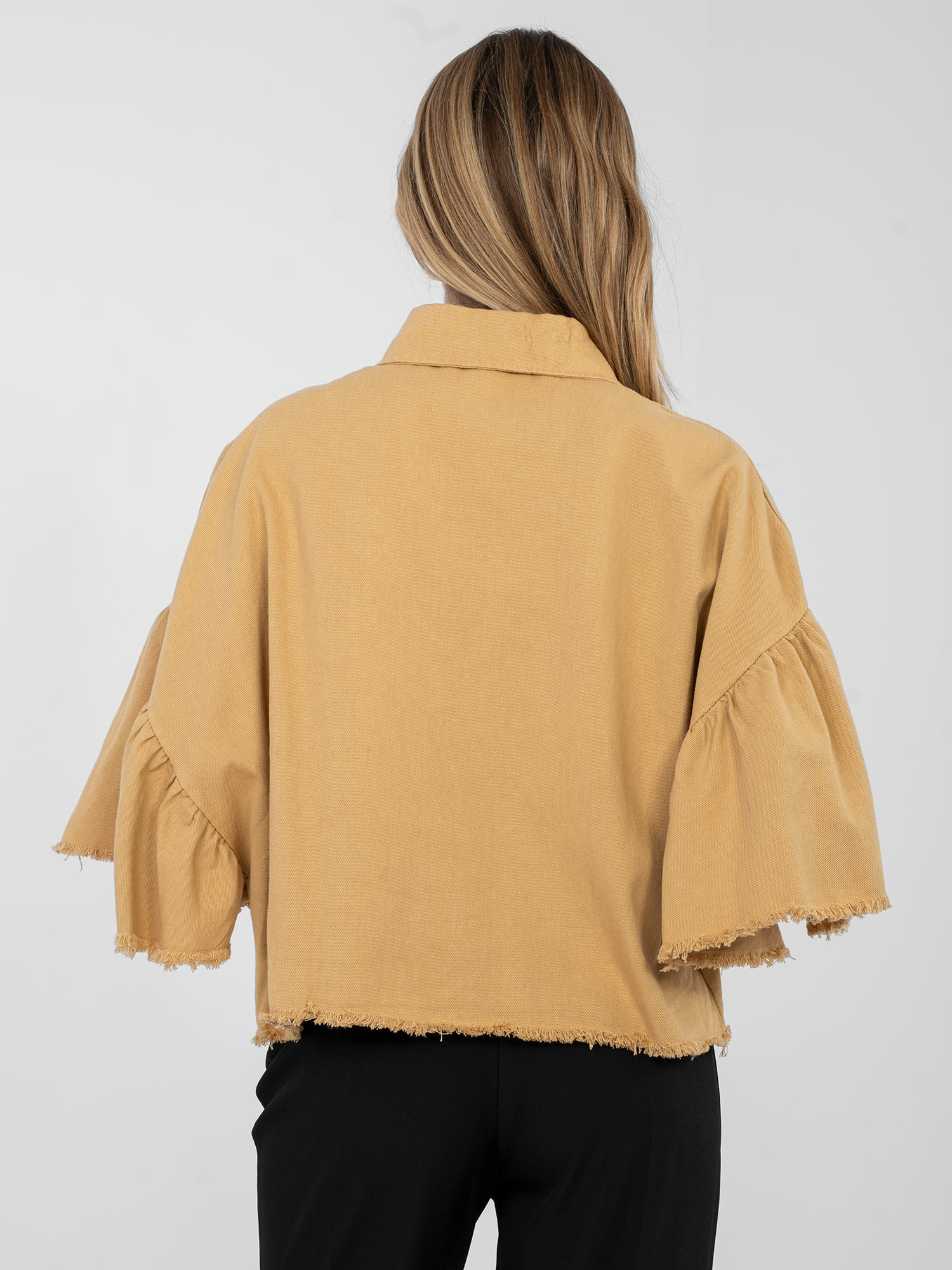Camelowa jeansowa kurtka z kołnierzykiem RUE PARIS .