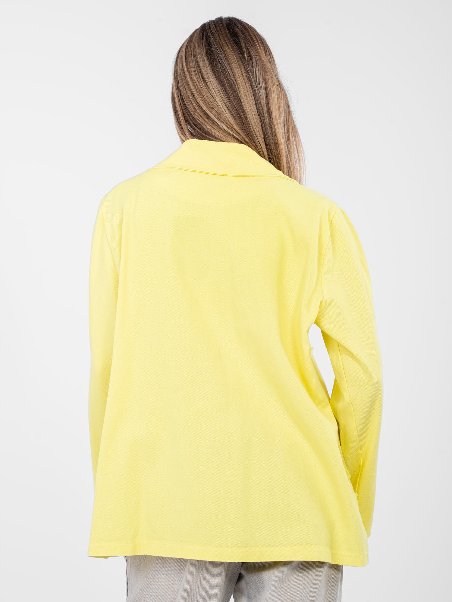 Żółta jeansowa marynarka z kieszeniami RUE PARIS .