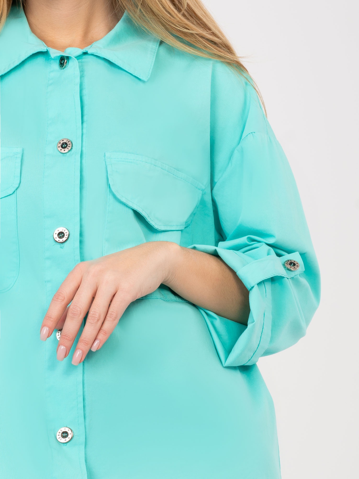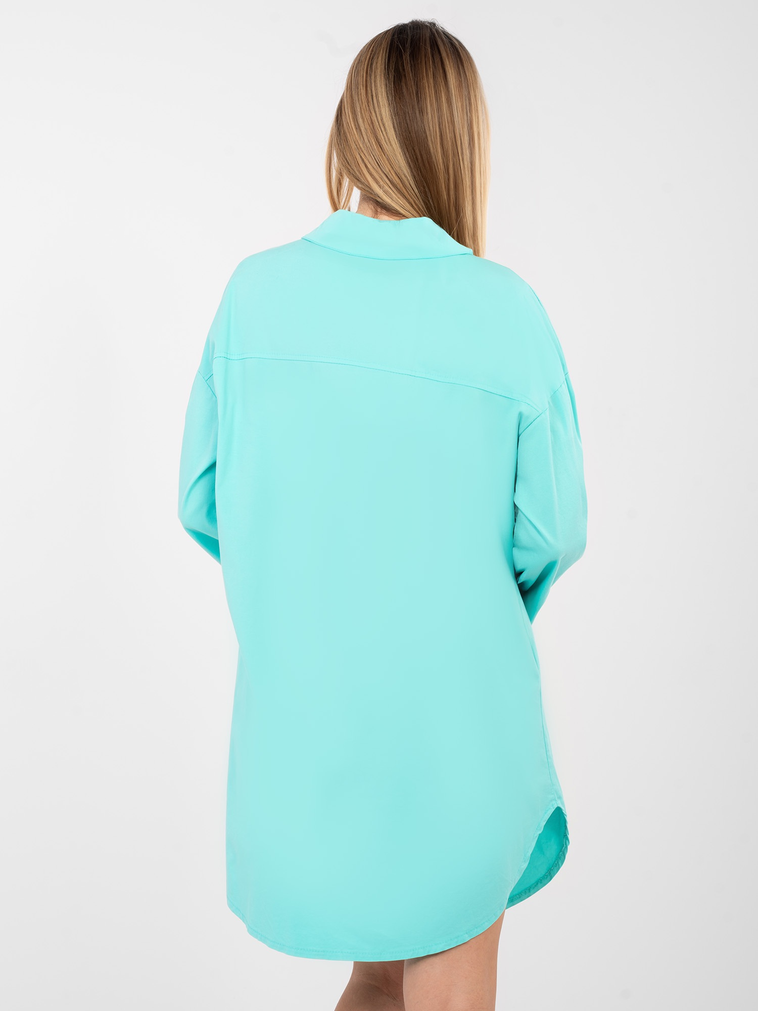 Turkusowa casualowa sukienka o kroju koszuli RUE PARIS .
