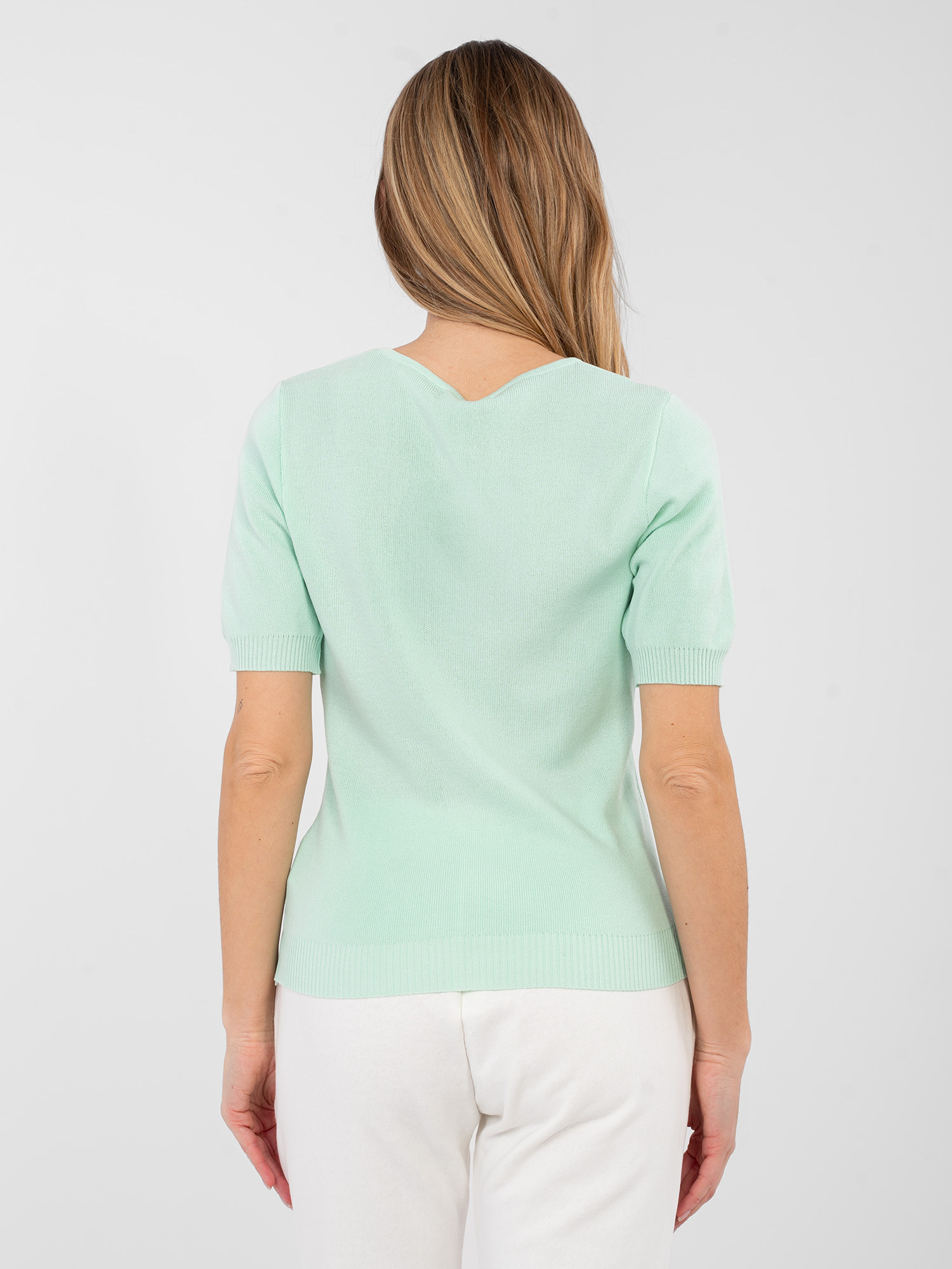 Jasnozielony klasyczny sweter z krótkim rękawem