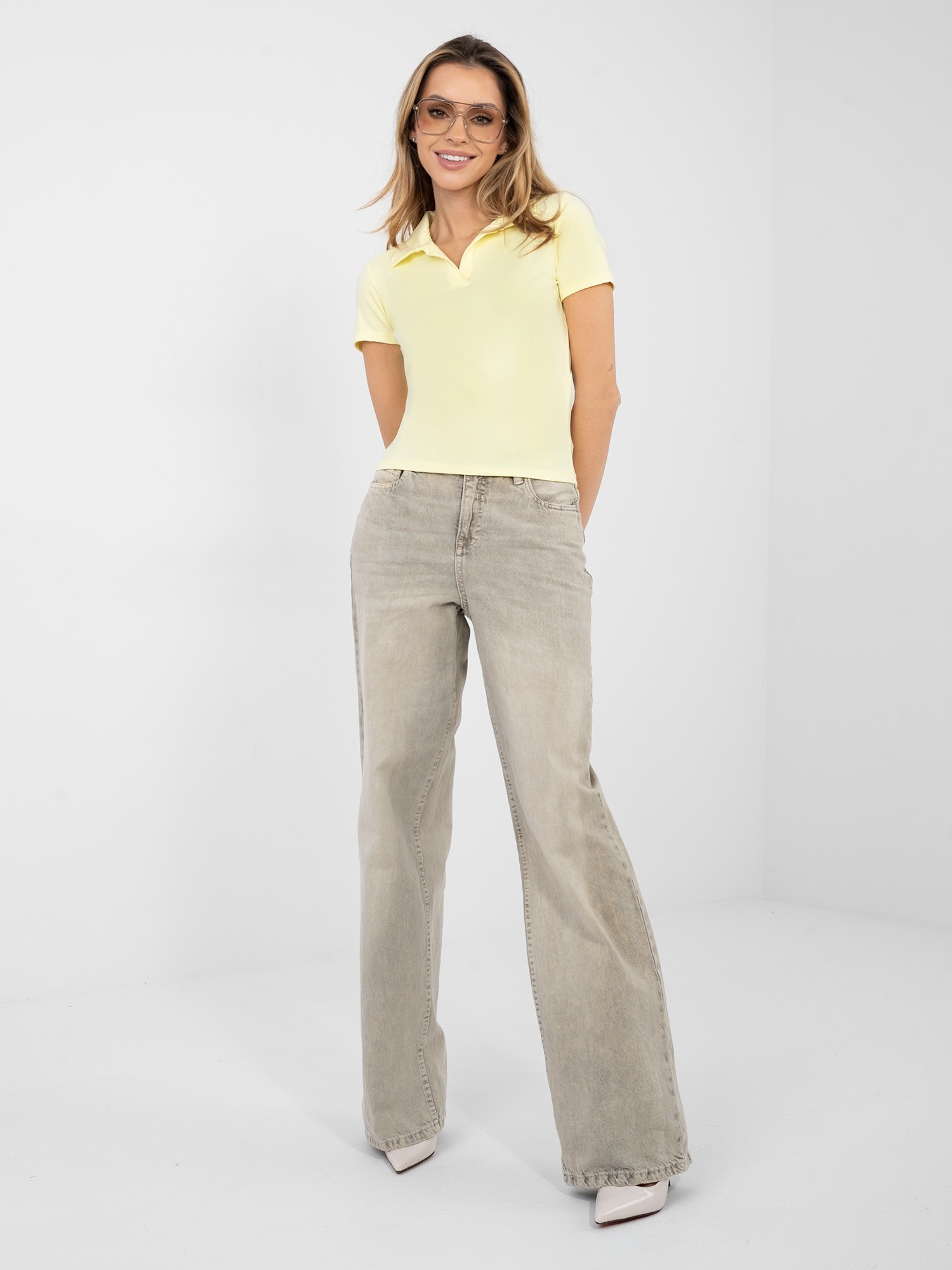 Jasnożółta dopasowana koszulka typu polo .