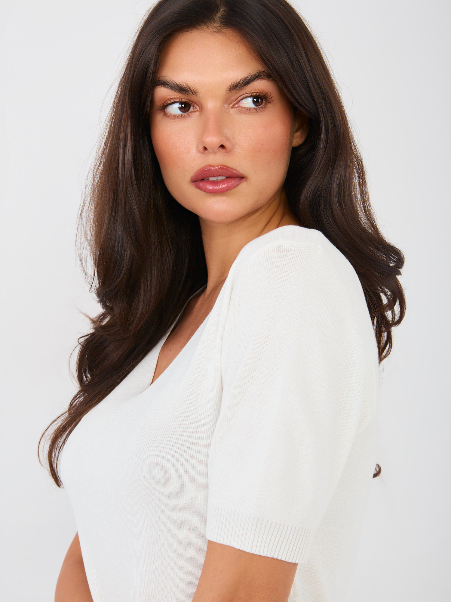 Ecru damski sweter z krótkim rękawem .