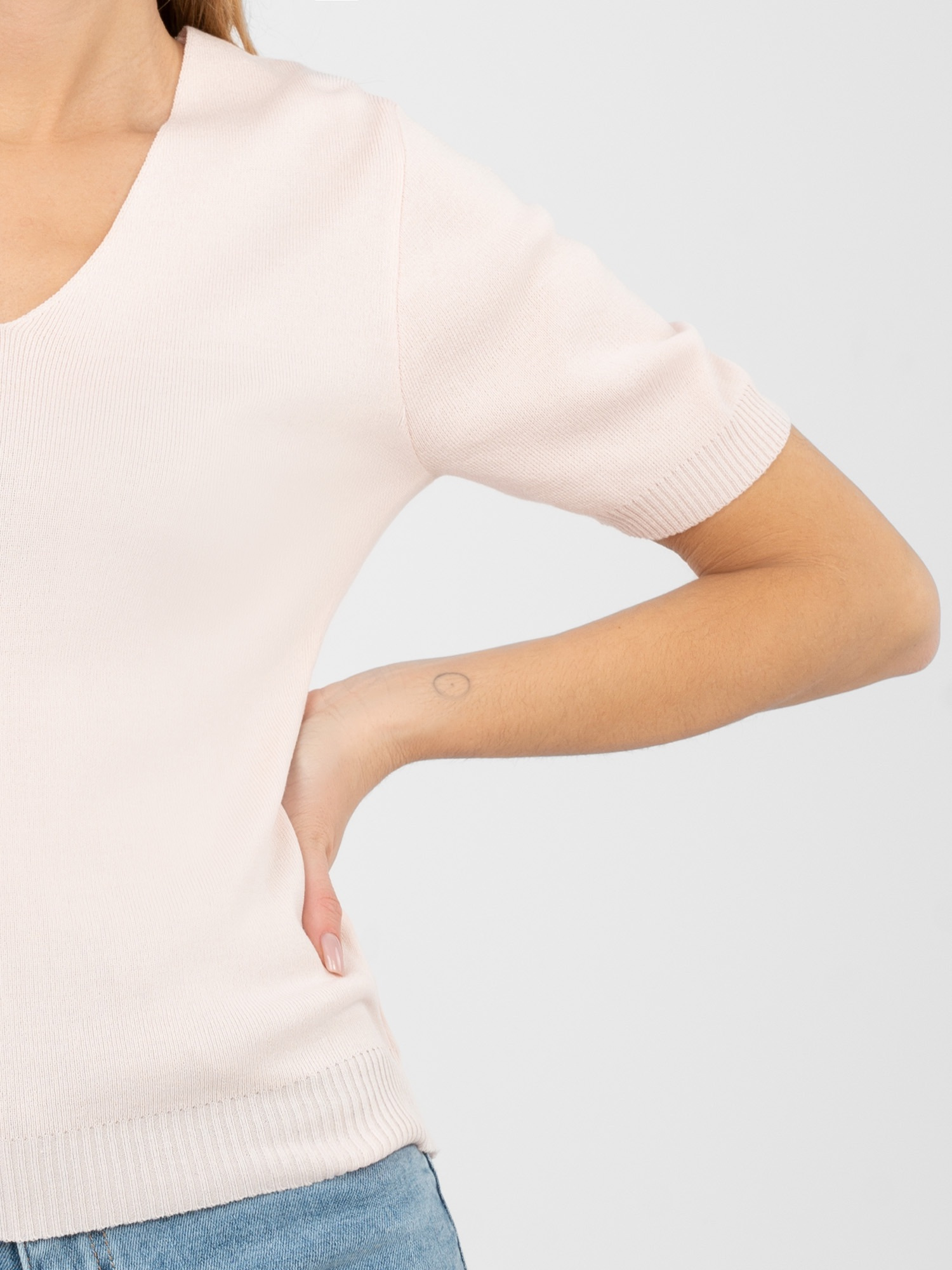 Jasnoróżowy damski sweter o dopasowanym kroju