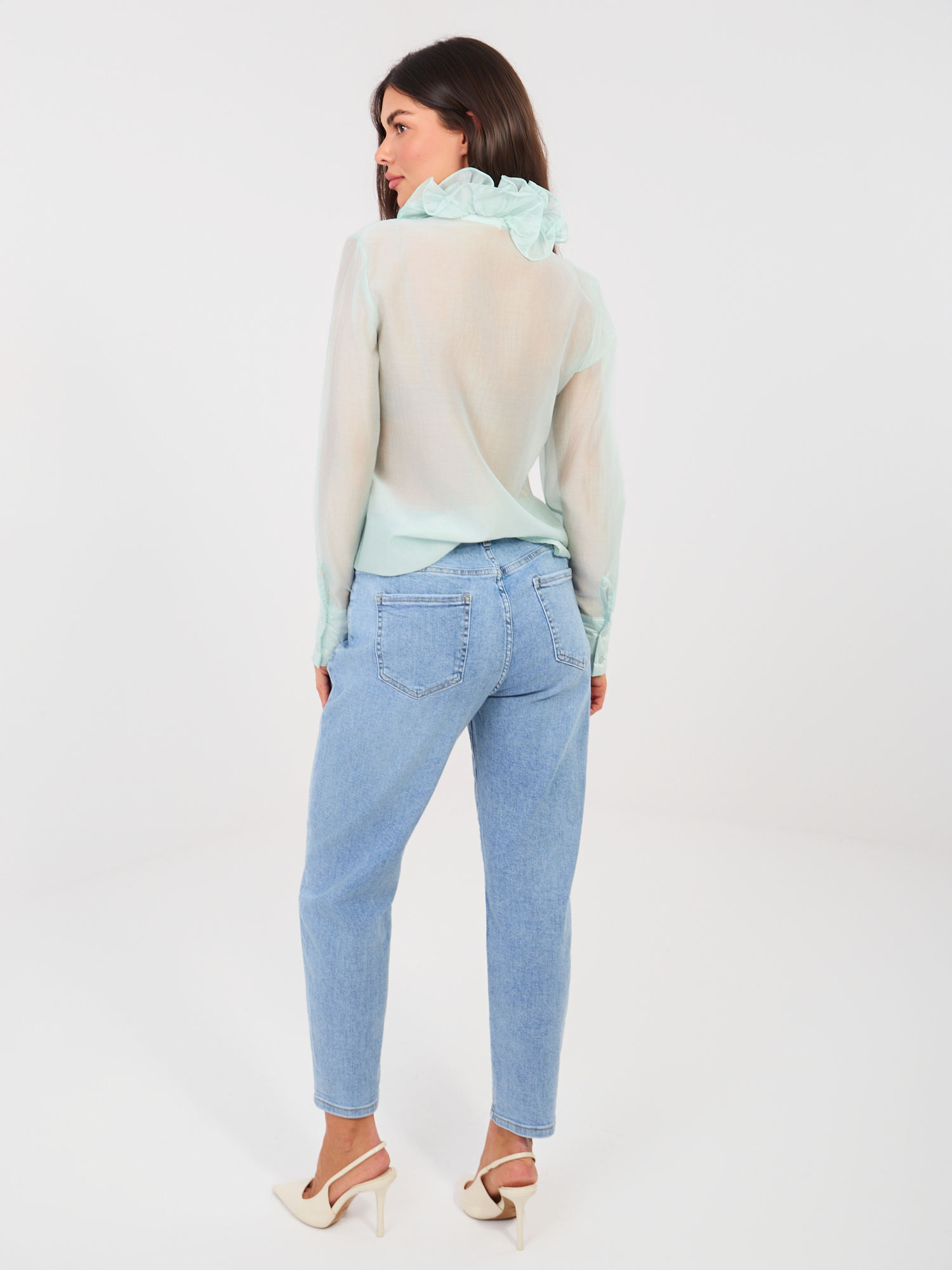 Niebieskie jeansowe spodnie mom .