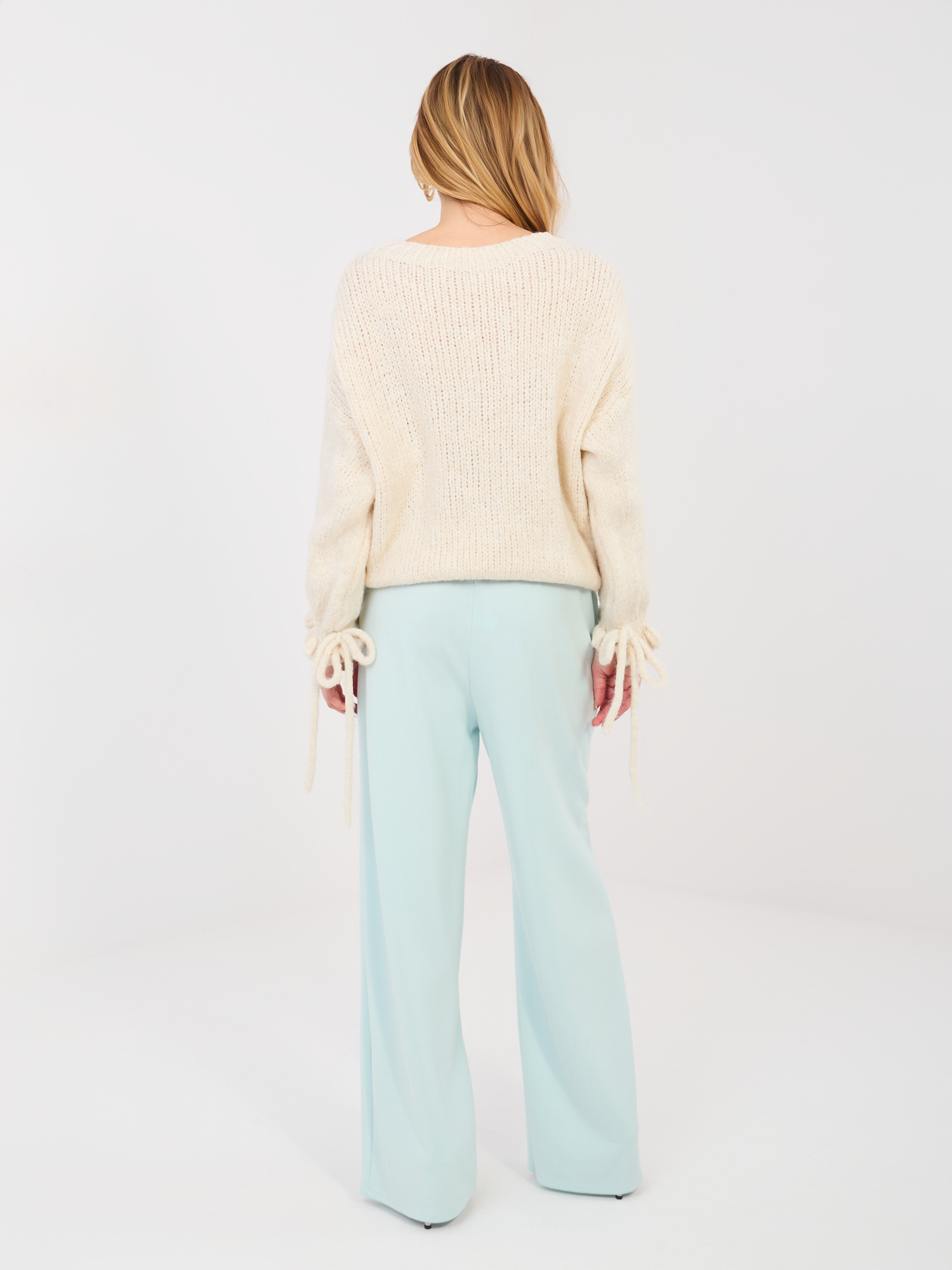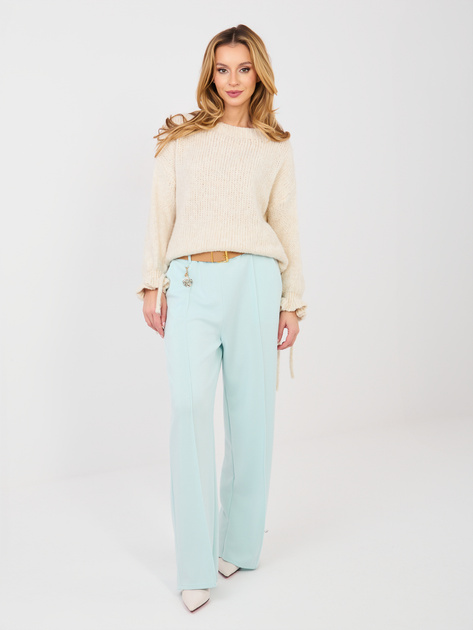 Pastelowe miętowe dresowe spodnie z paskiem RUE PARIS .