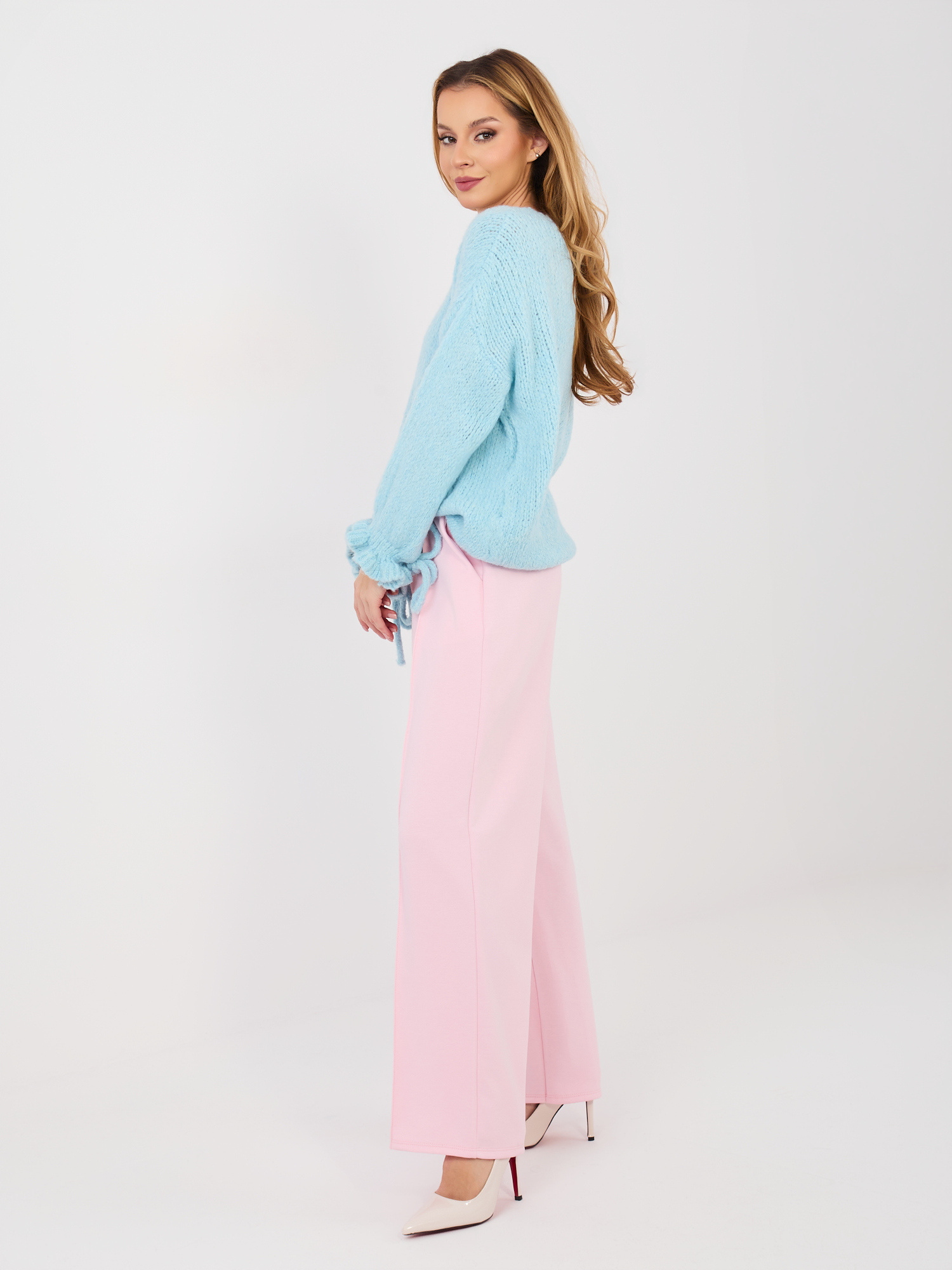 Pastelowe różowe spodnie z miękkiego materiału RUE PARIS .