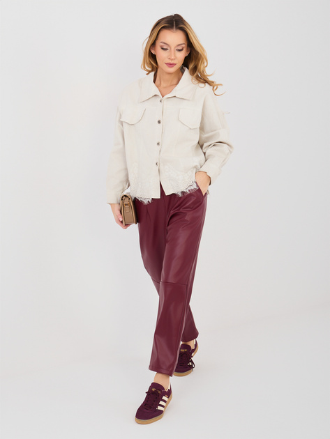 Opinie o Bordowe skórzane spodnie z nogawką 7/8 RUE PARIS