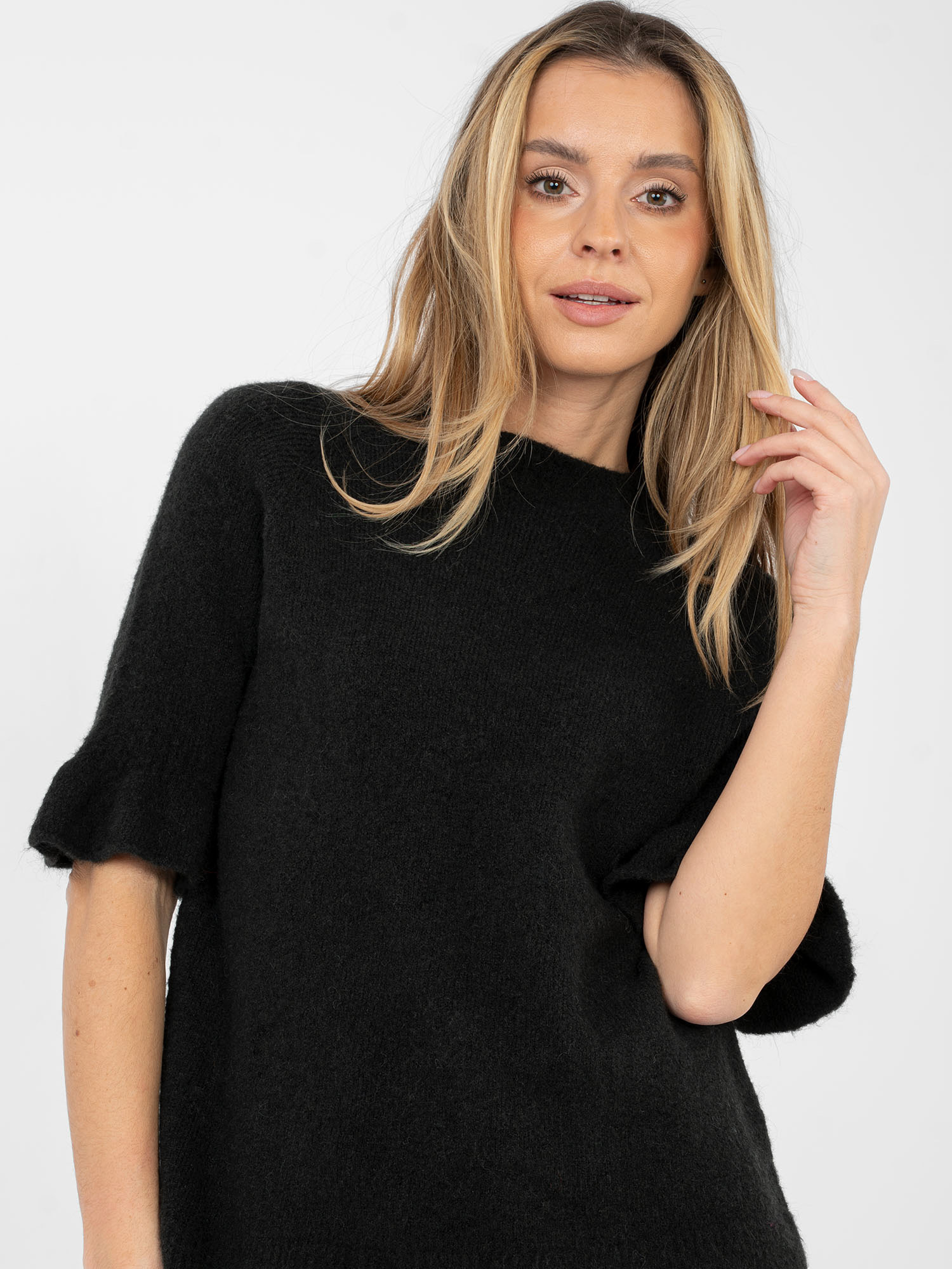 Czarny damski sweter z krótkim rękawem