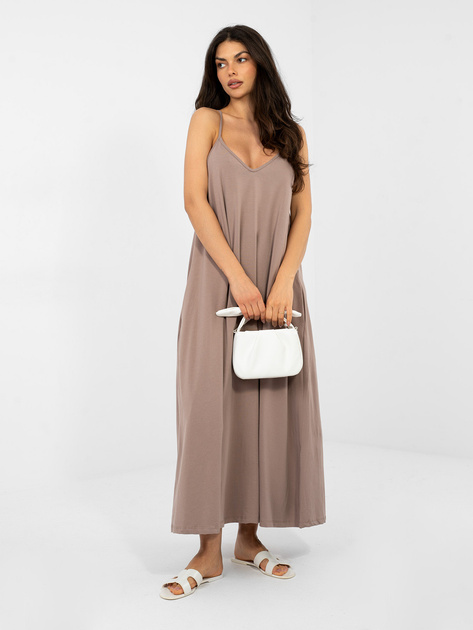 Ciemnobeżowa letnia sukienka z dekoltem V RUE PARIS .