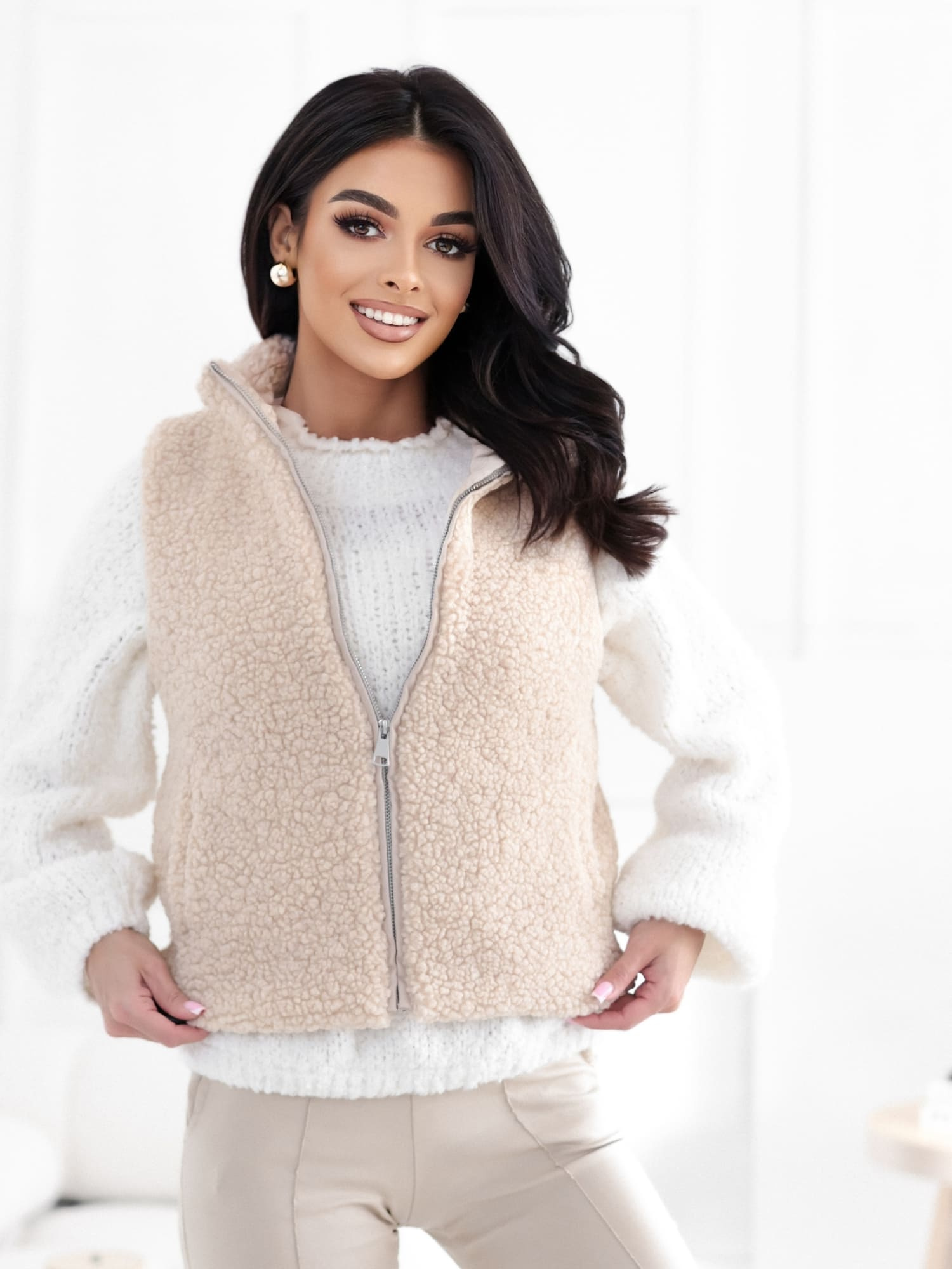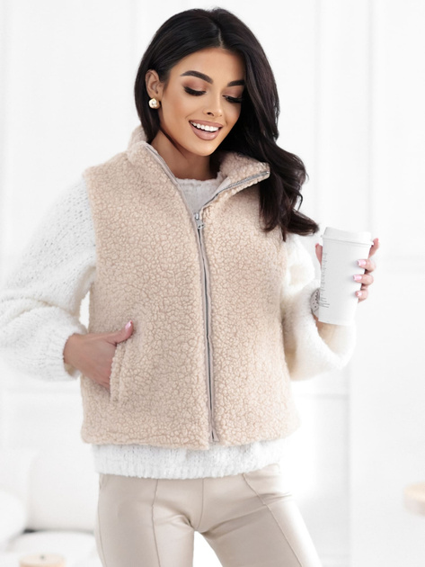 Jasnobeżowa kamizelka baranek z kieszeniami