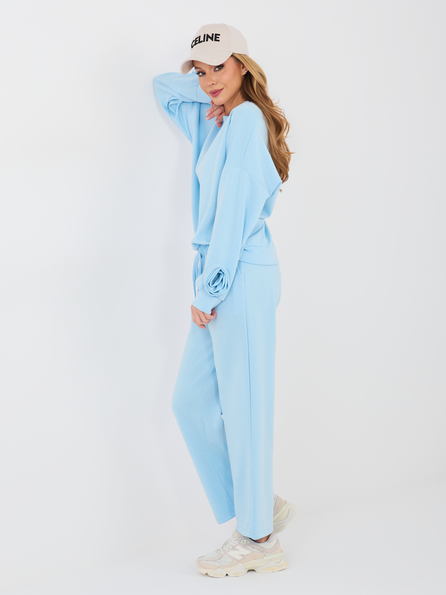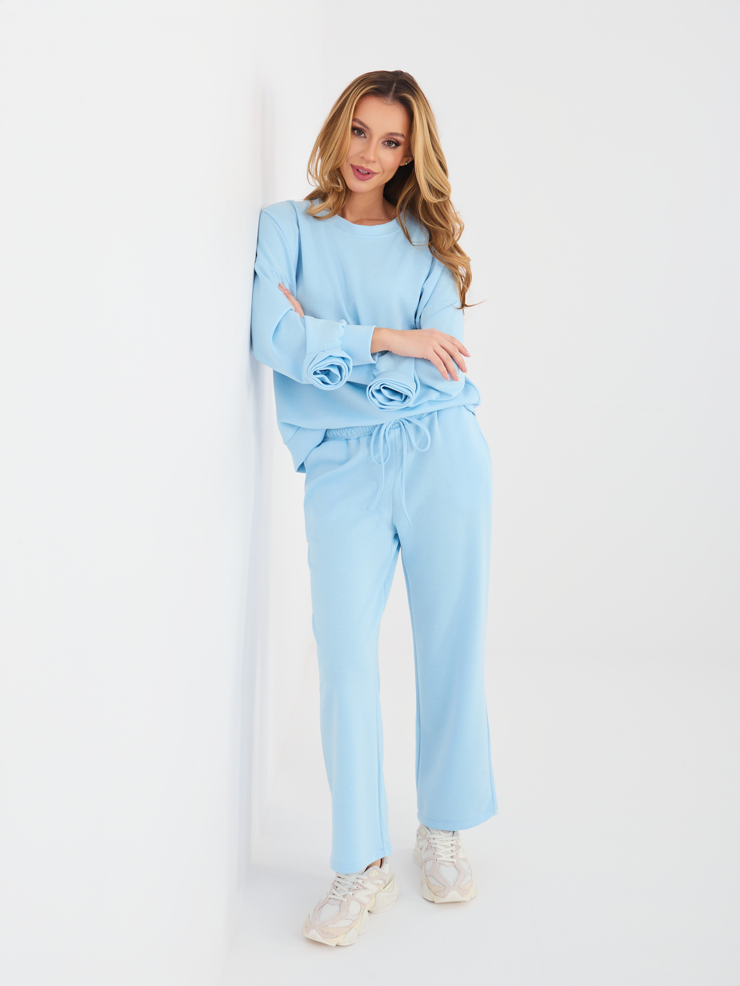 Pastelowy niebieski komplet z ozdobnymi różami