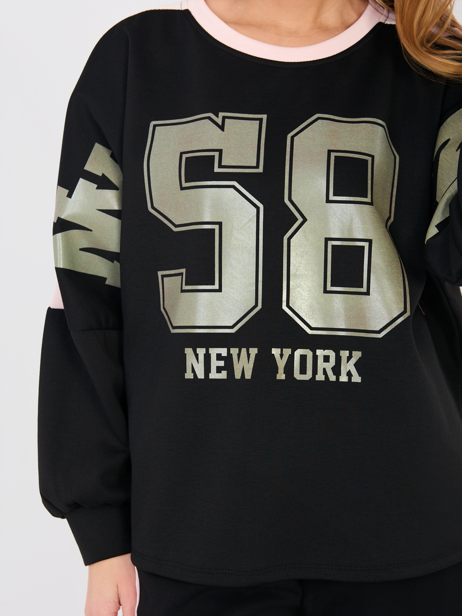 Czarny dwuczęściowy komplet z lampasami RUE PARIS .