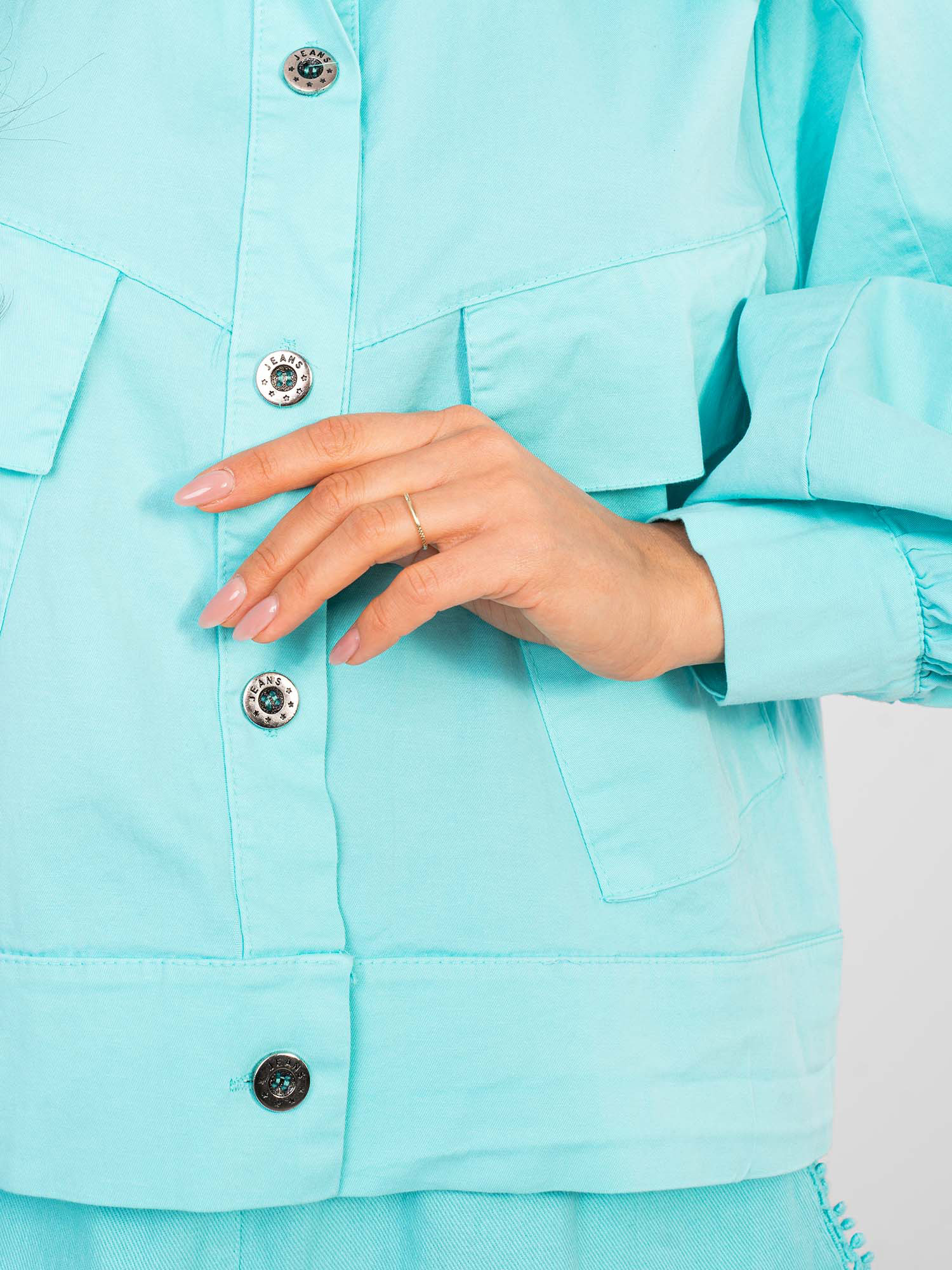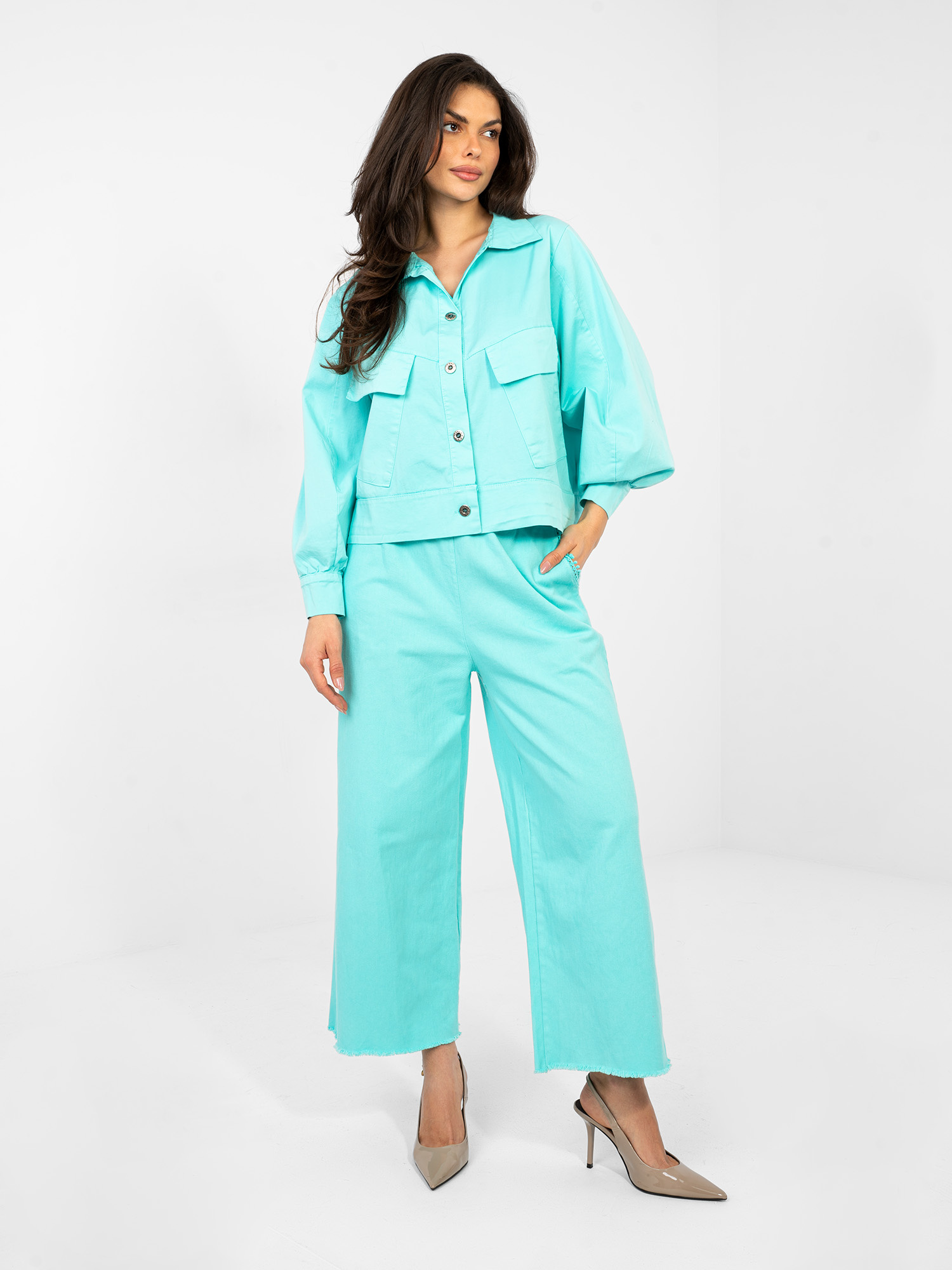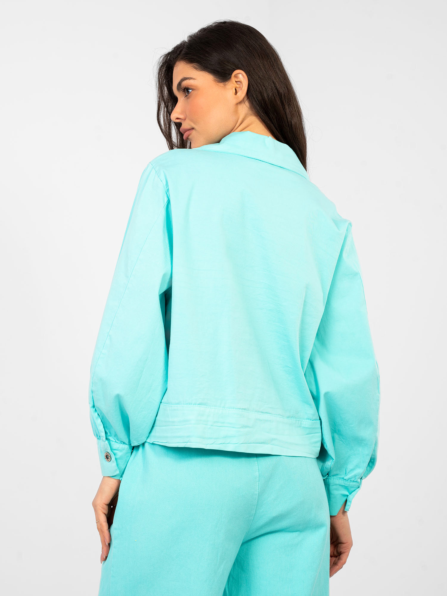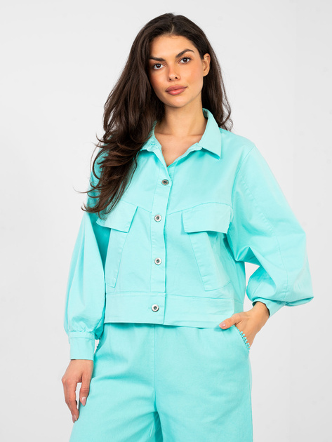 Turkusowa koszula z bufiastymi rękawami RUE PARIS .