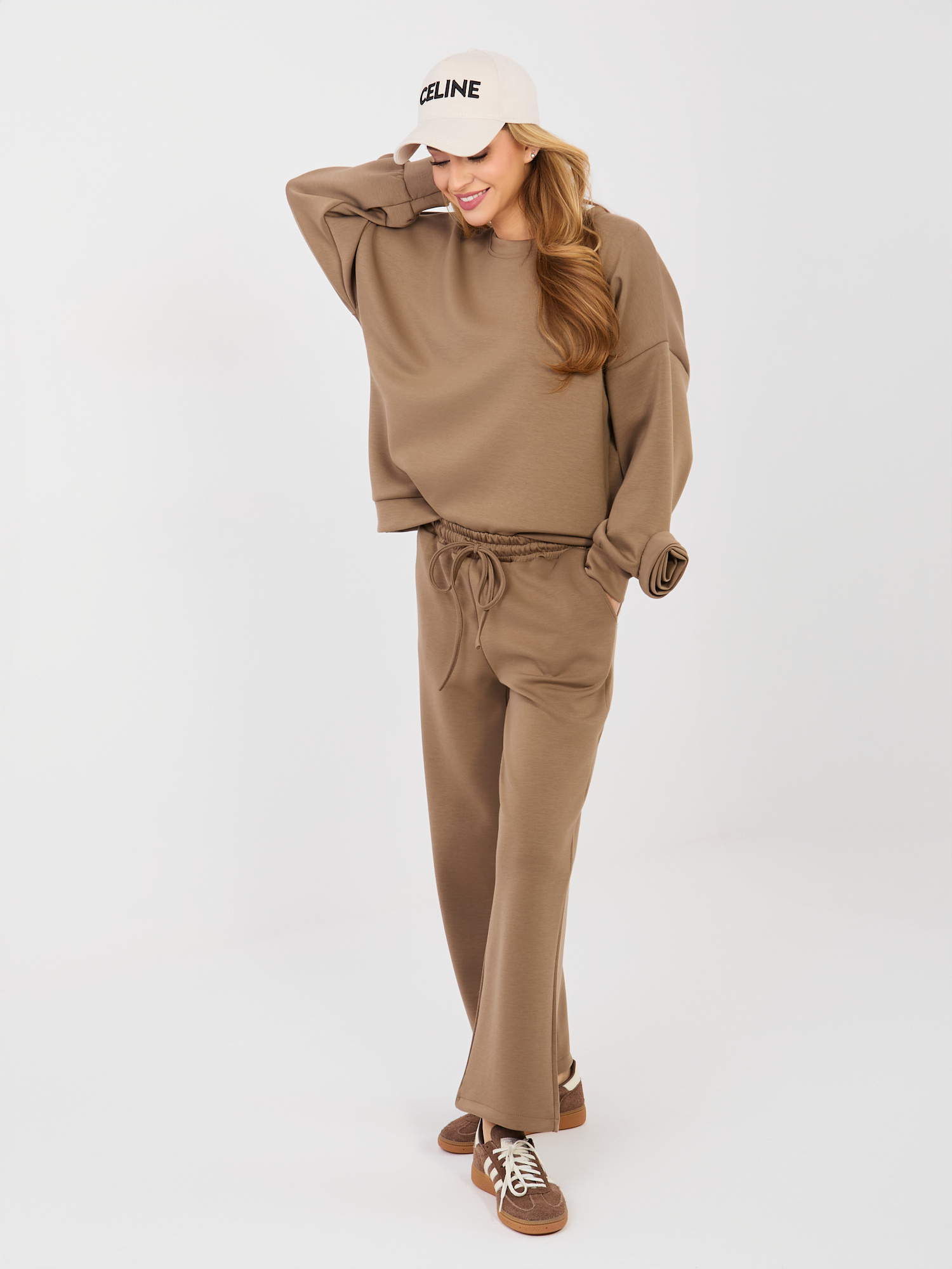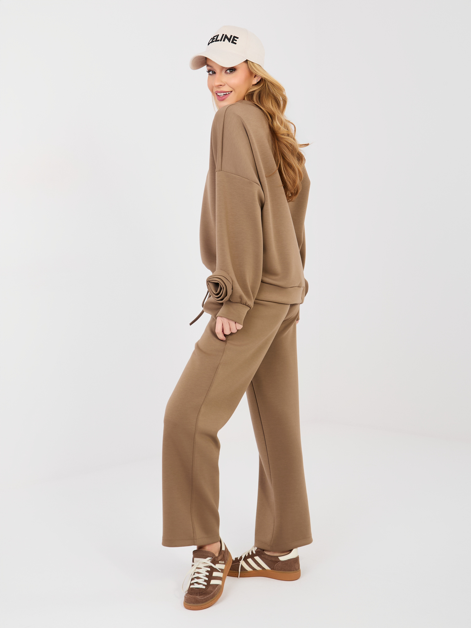 Brązowy damski komplet z bluzą oversize