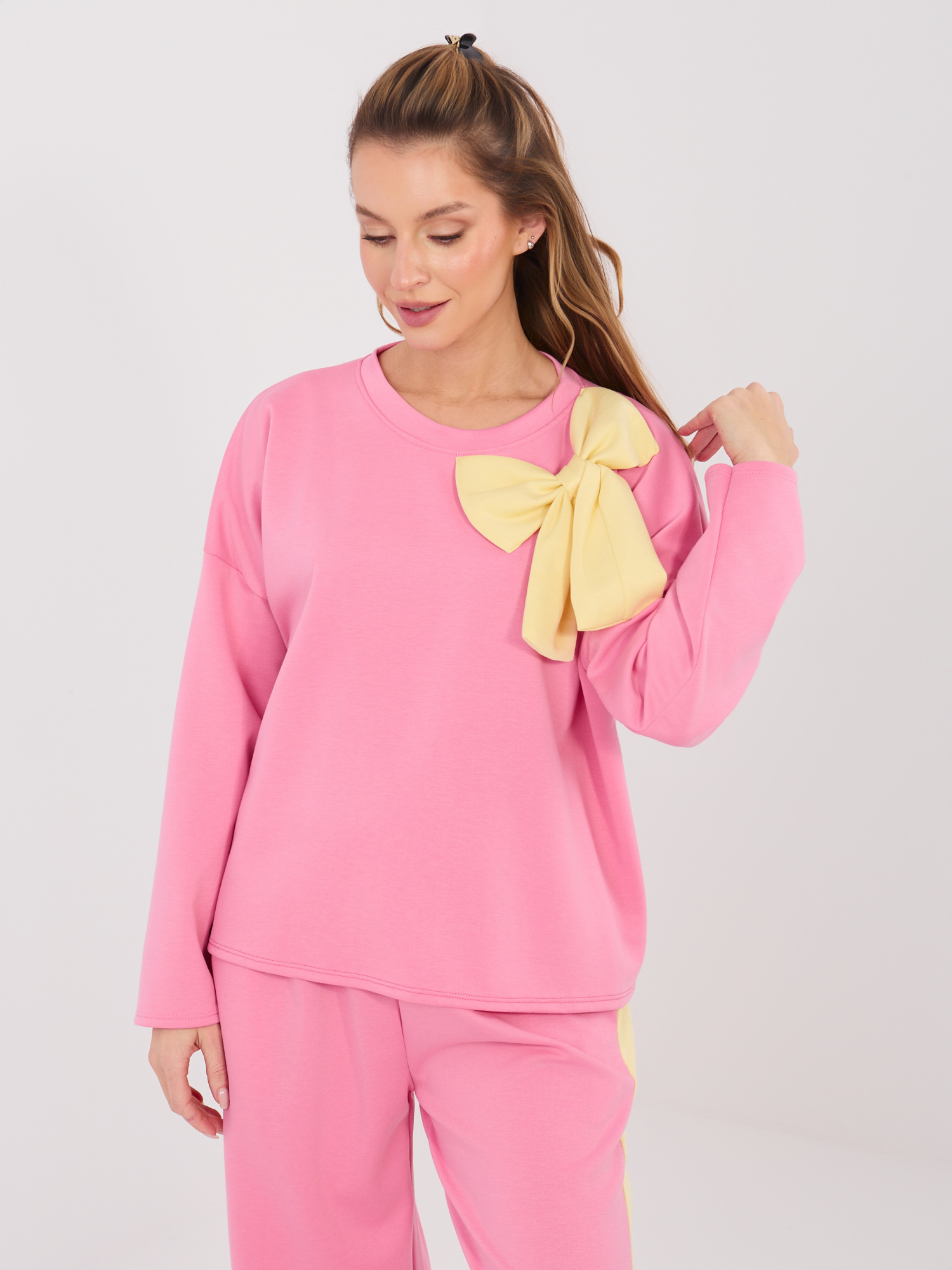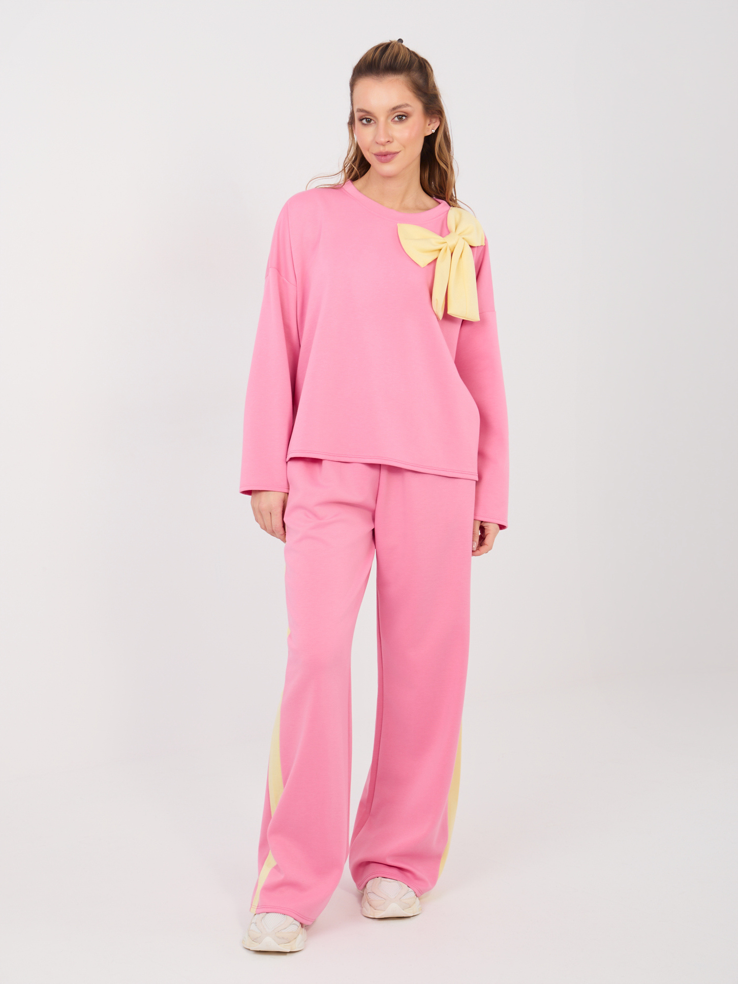 Różowy komplet z kontrastową kokardą RUE PARIS .