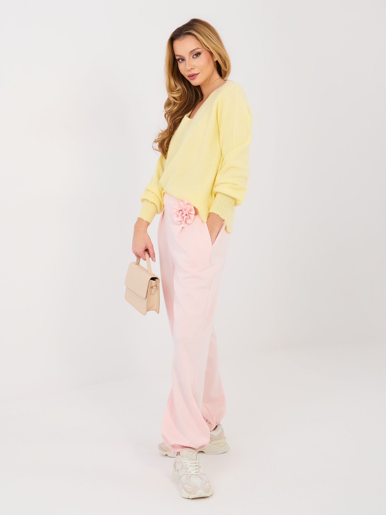Pastelowy żółty sweter oversize z dekoltem V