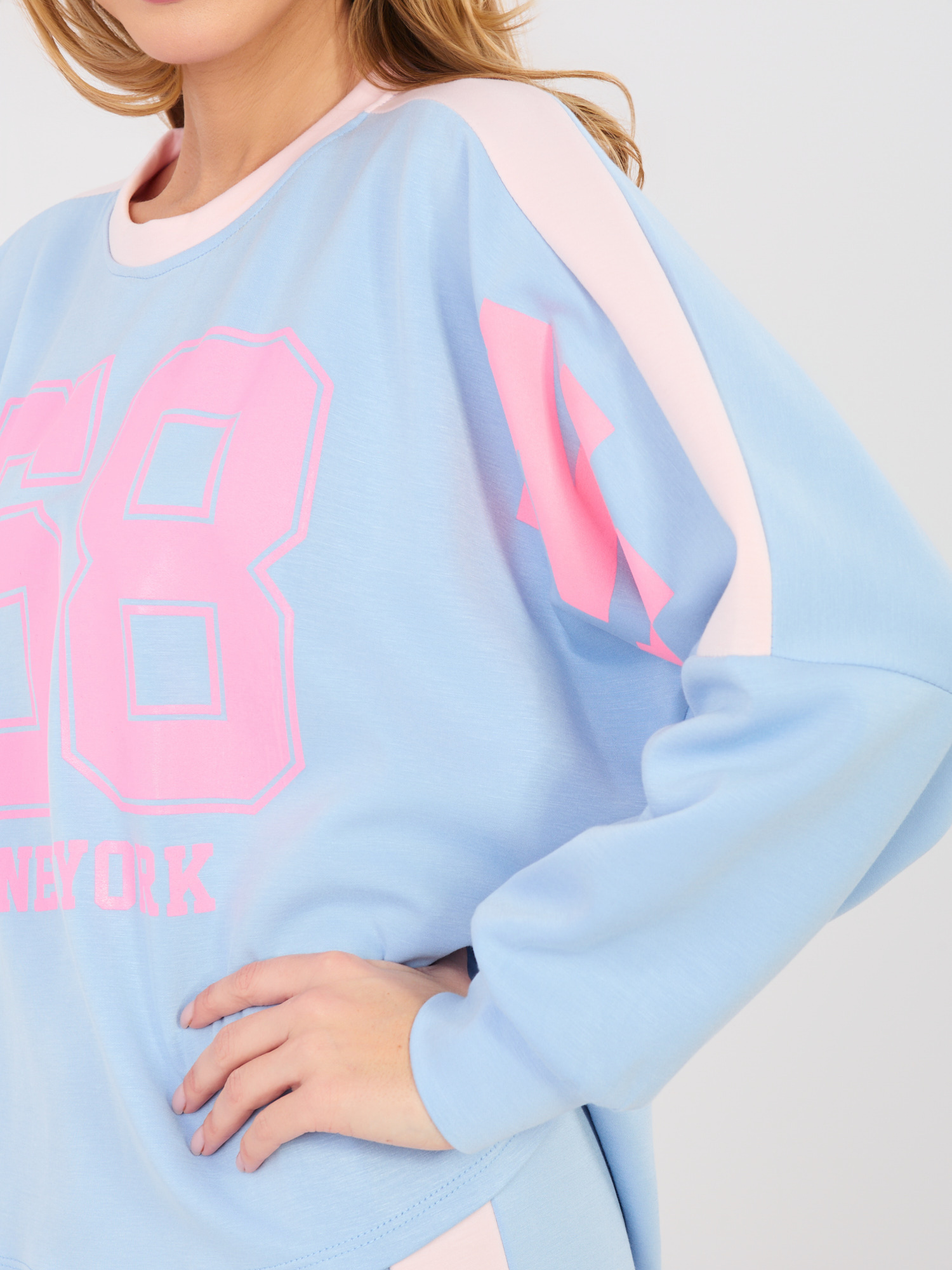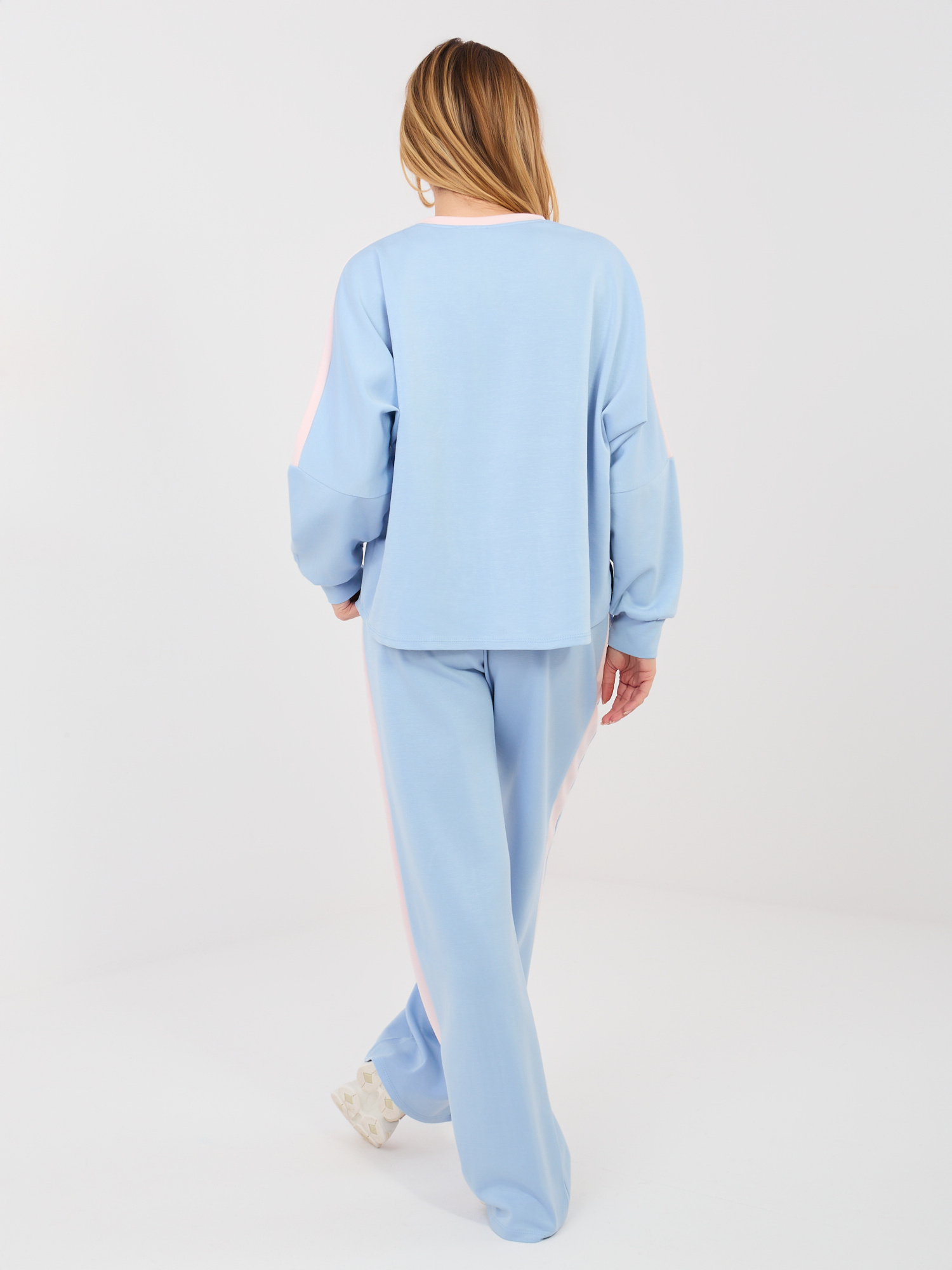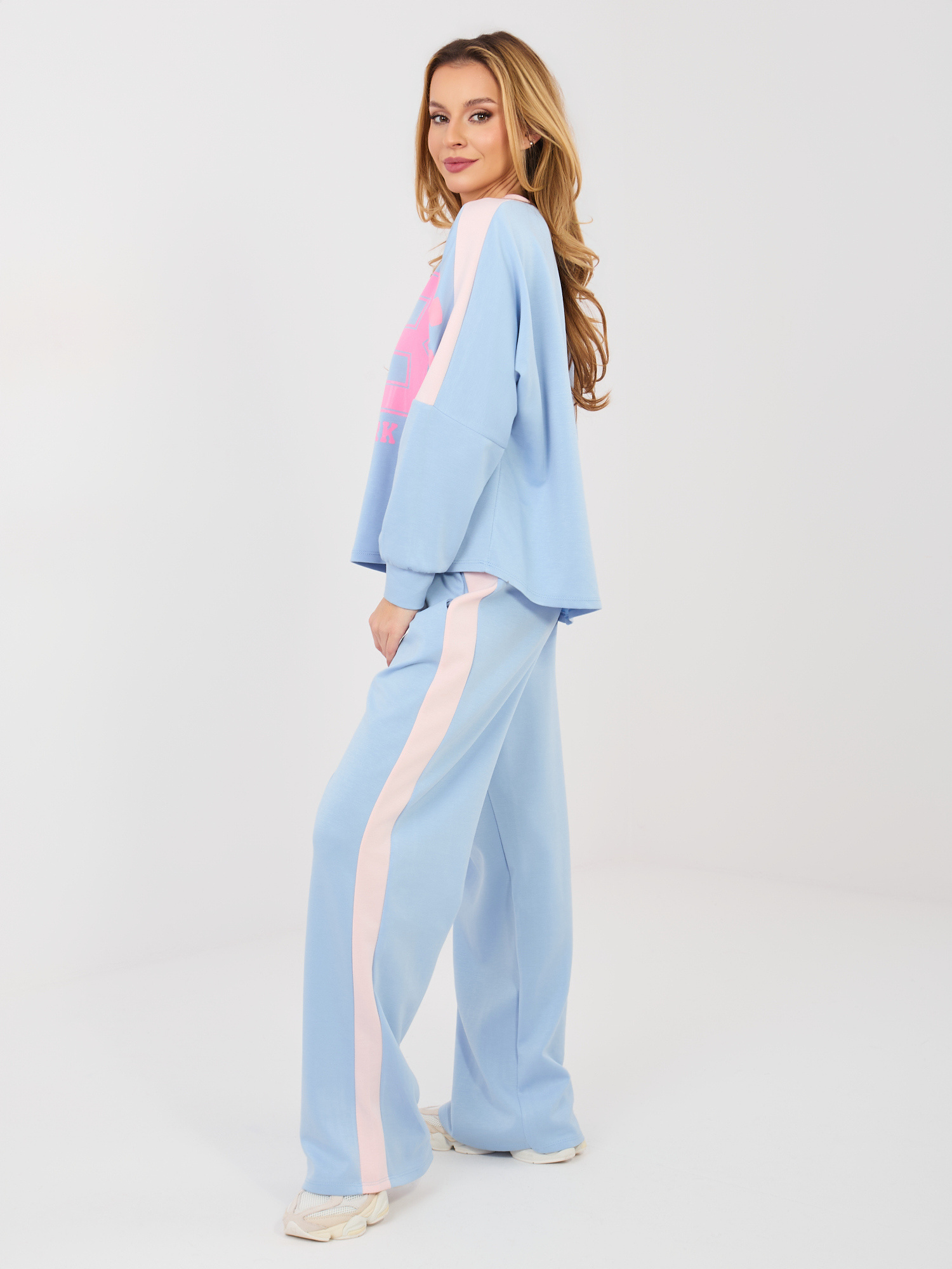 Pastelowy niebieski komplet z lampasami RUE PARIS .