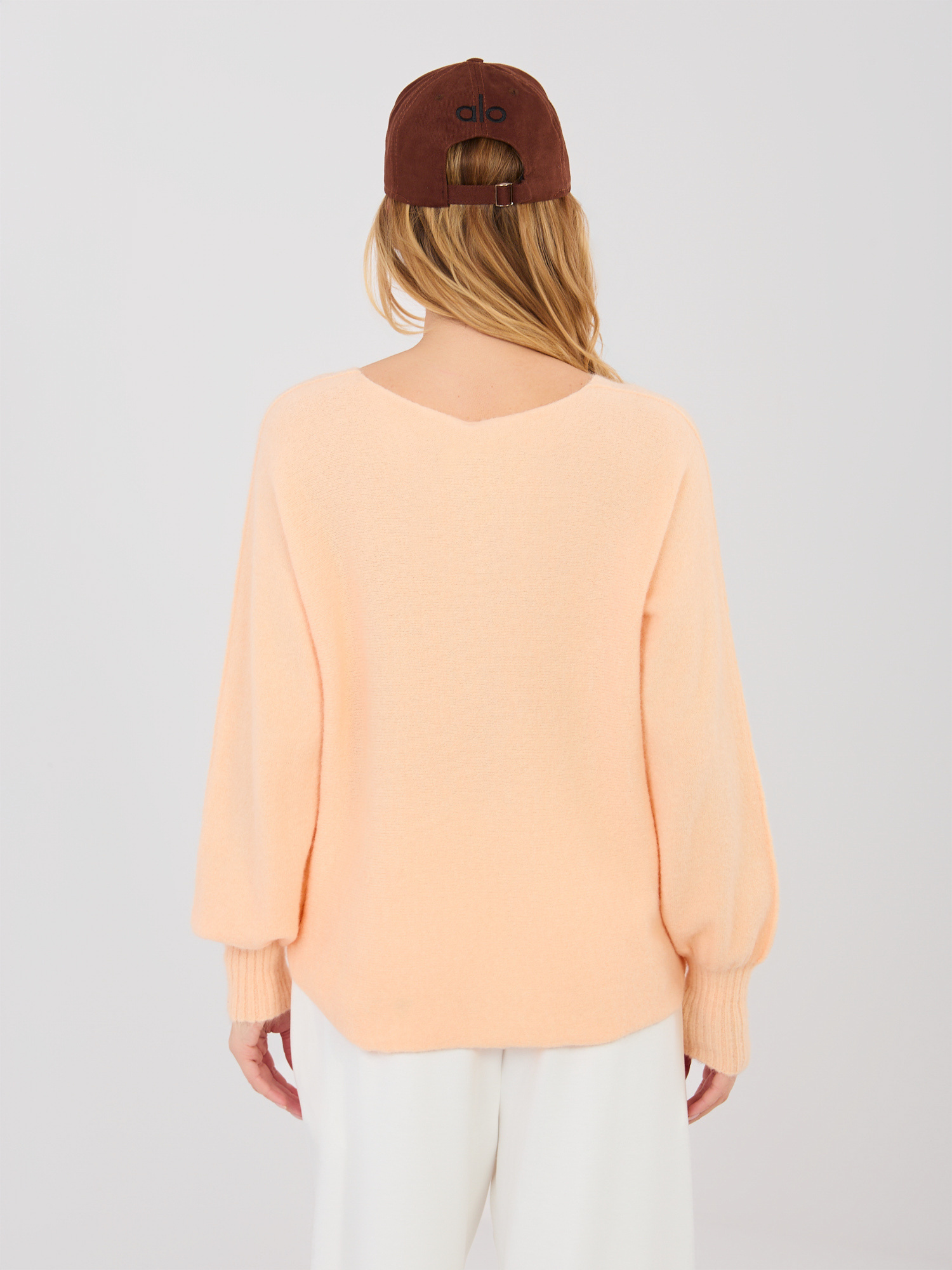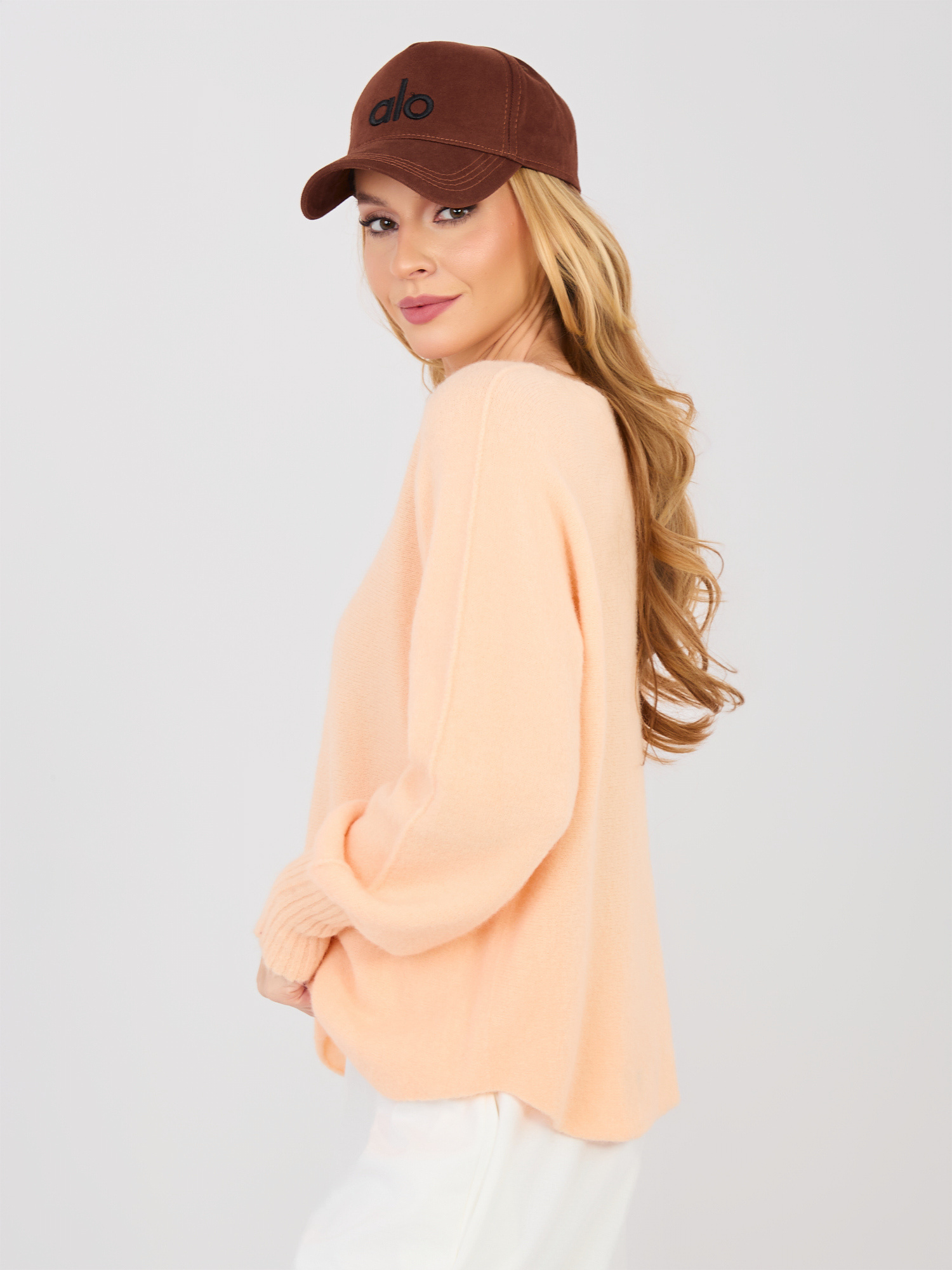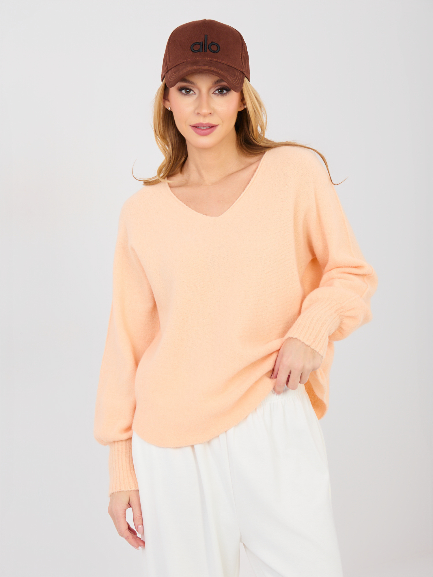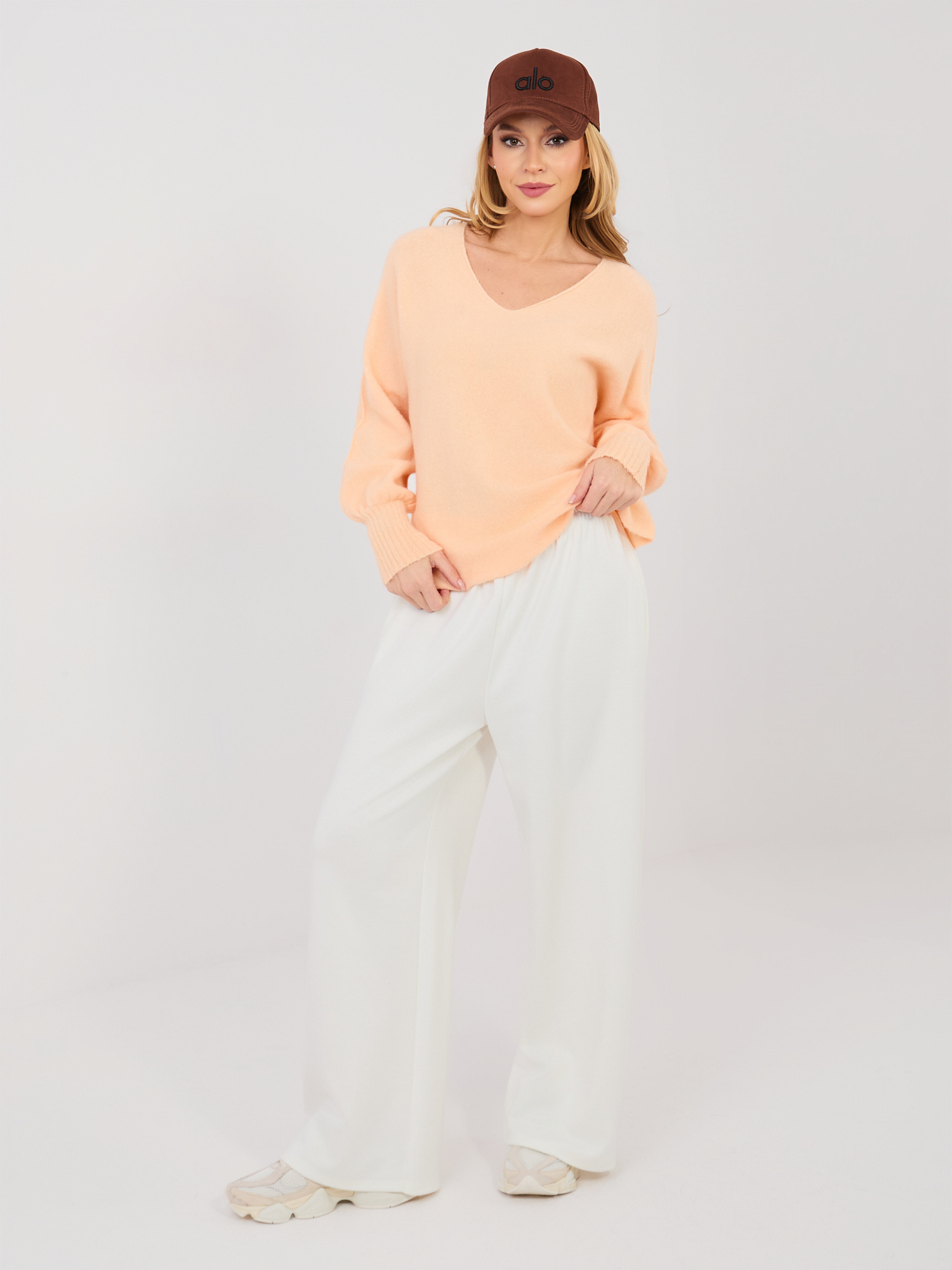 Pastelowy pomarańczowy sweter z domieszką alpaki .