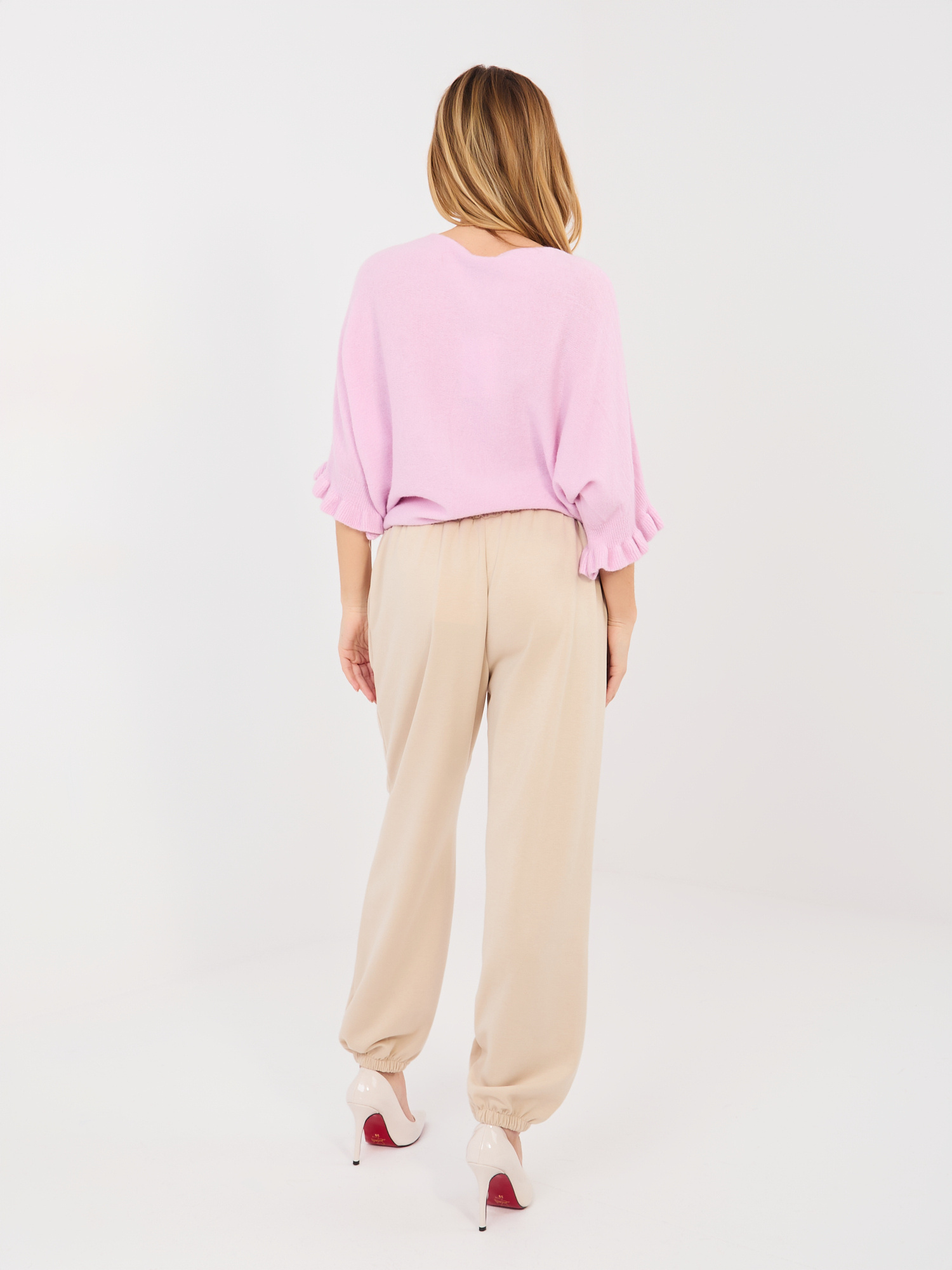 Beżowe dresowe spodnie z miękkiego materiału .
