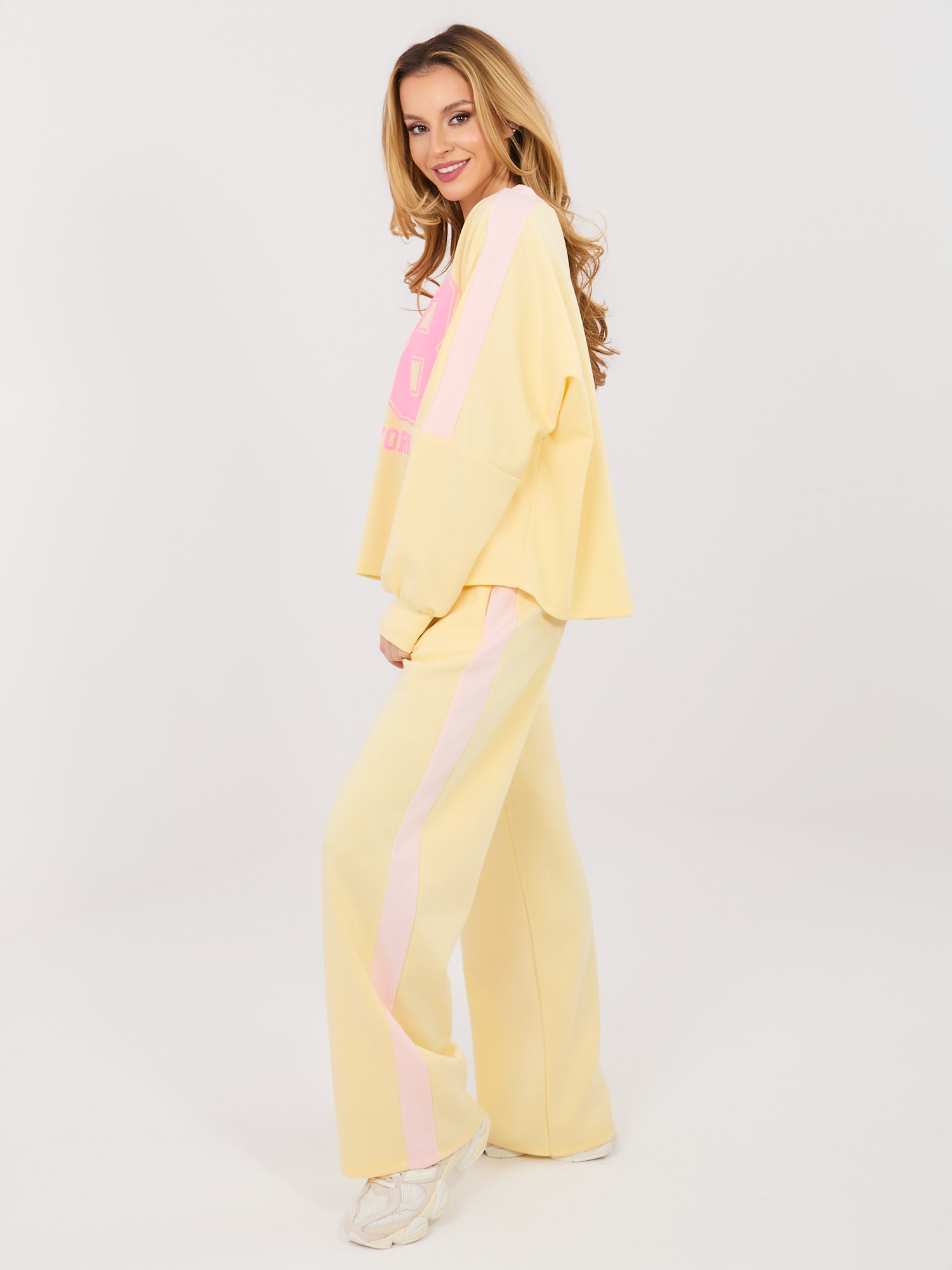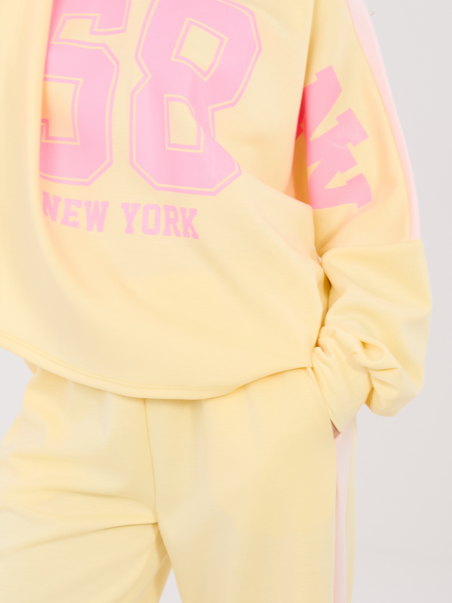 Pastelowy żółty casualowy komplet z numerem 58 RUE PARIS .