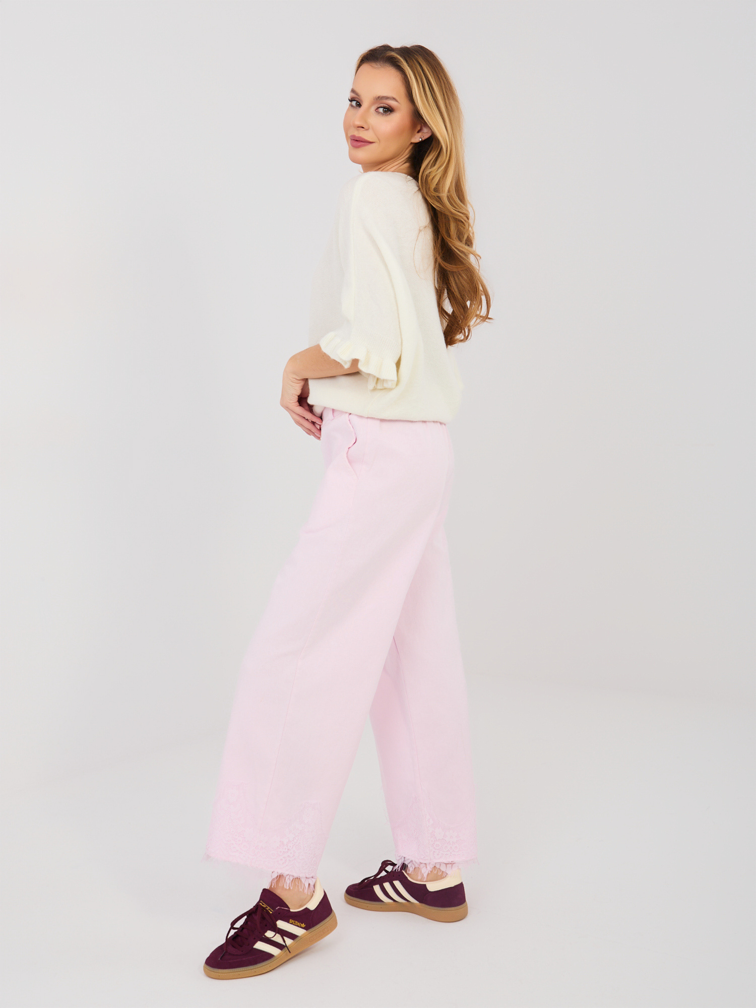 Jasnoróżowe jeansowe spodnie od kompletu RUE PARIS .