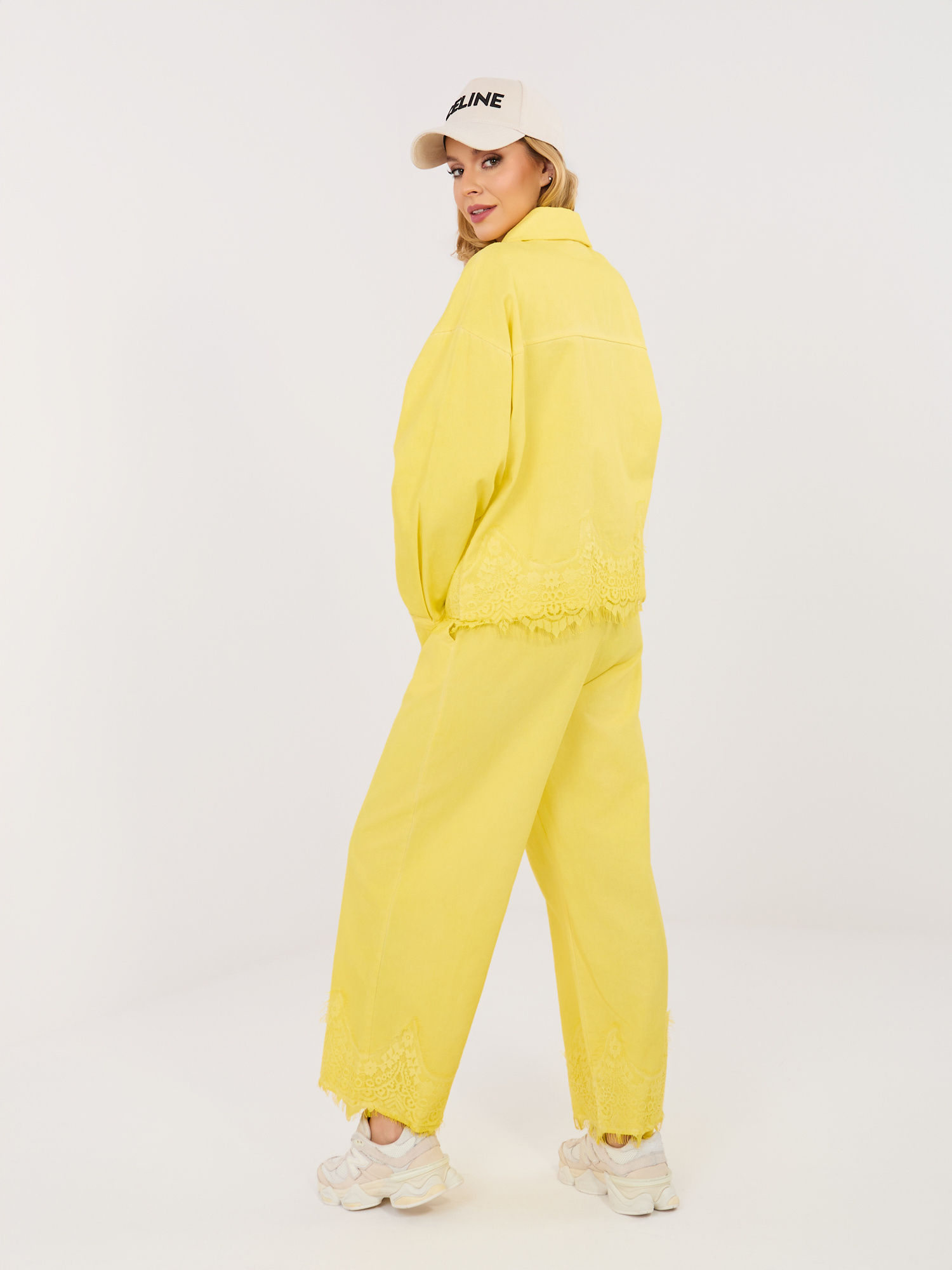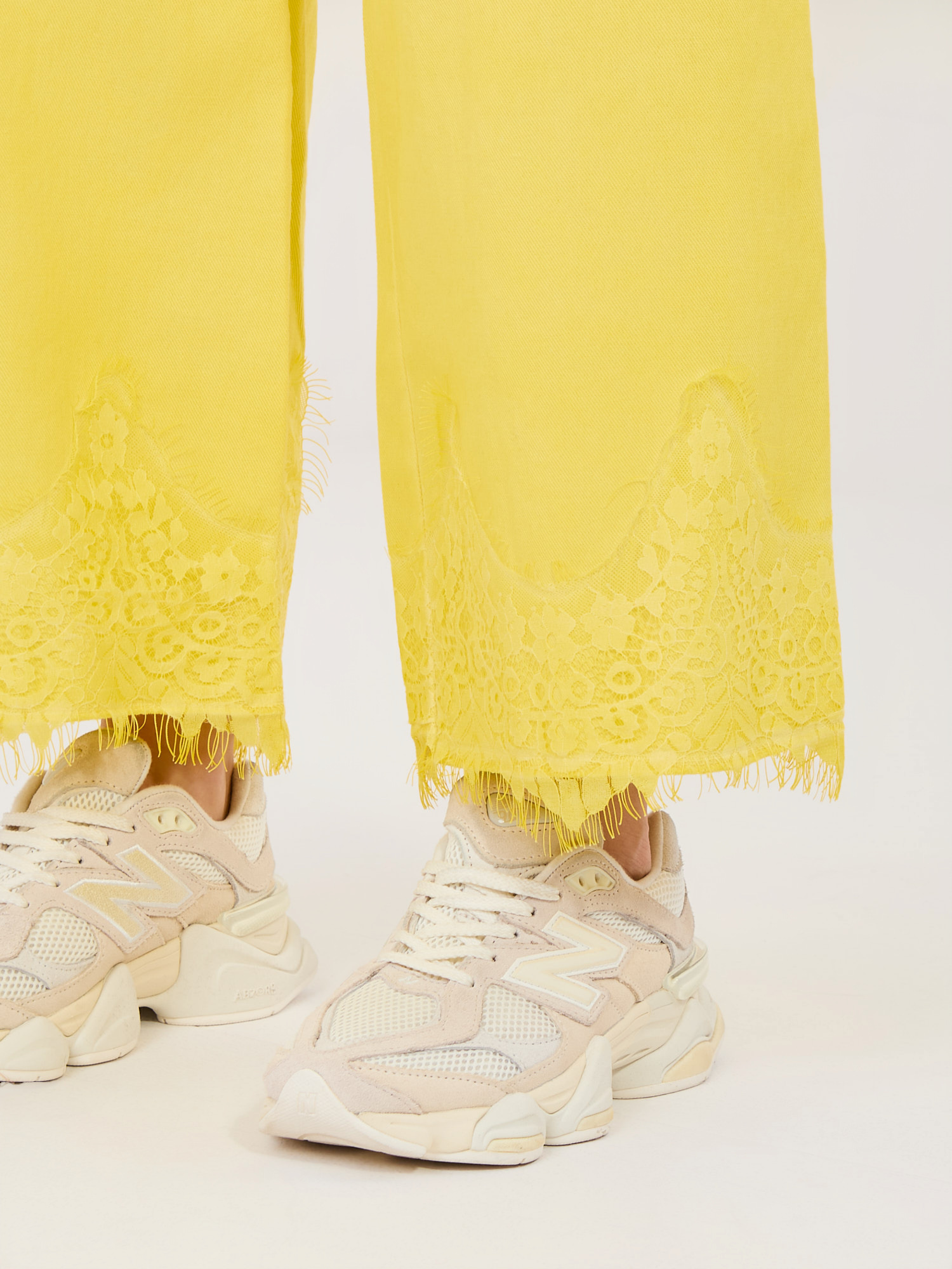 Żółte jeansowe spodnie z koronką RUE PARIS .