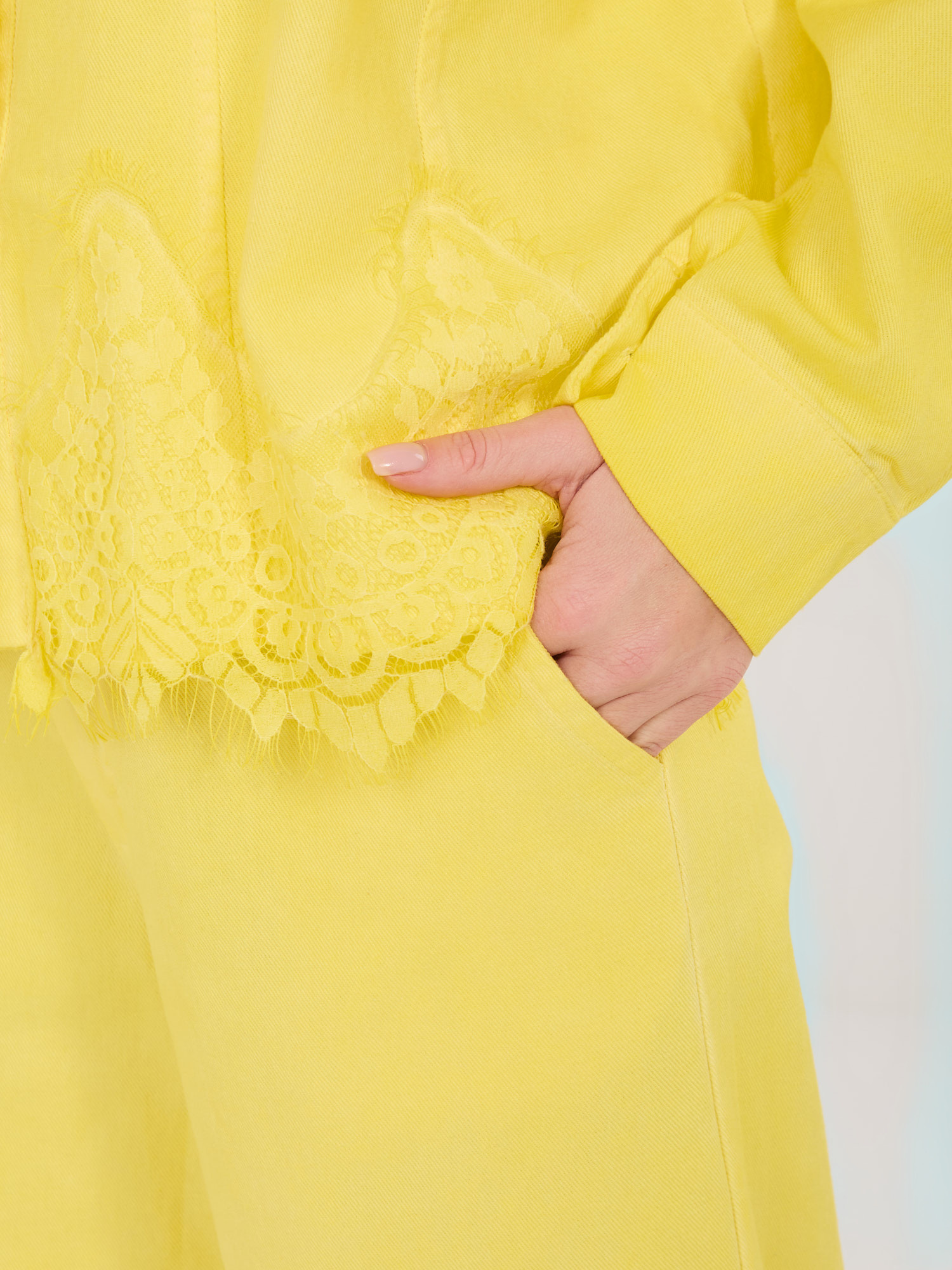 Żółta jeansowa kurtka z koronką RUE PARIS .