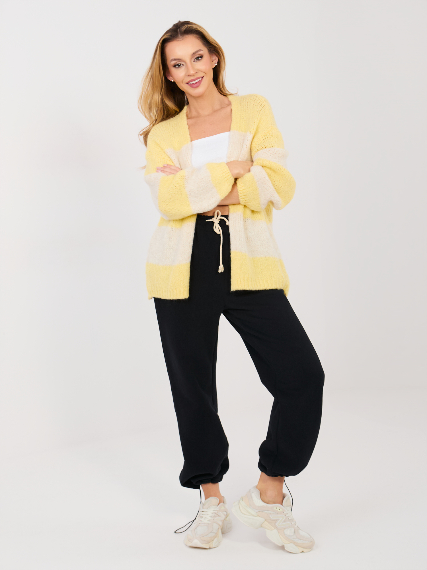 Pastelowy żółty damski kardigan z domieszką wełny .