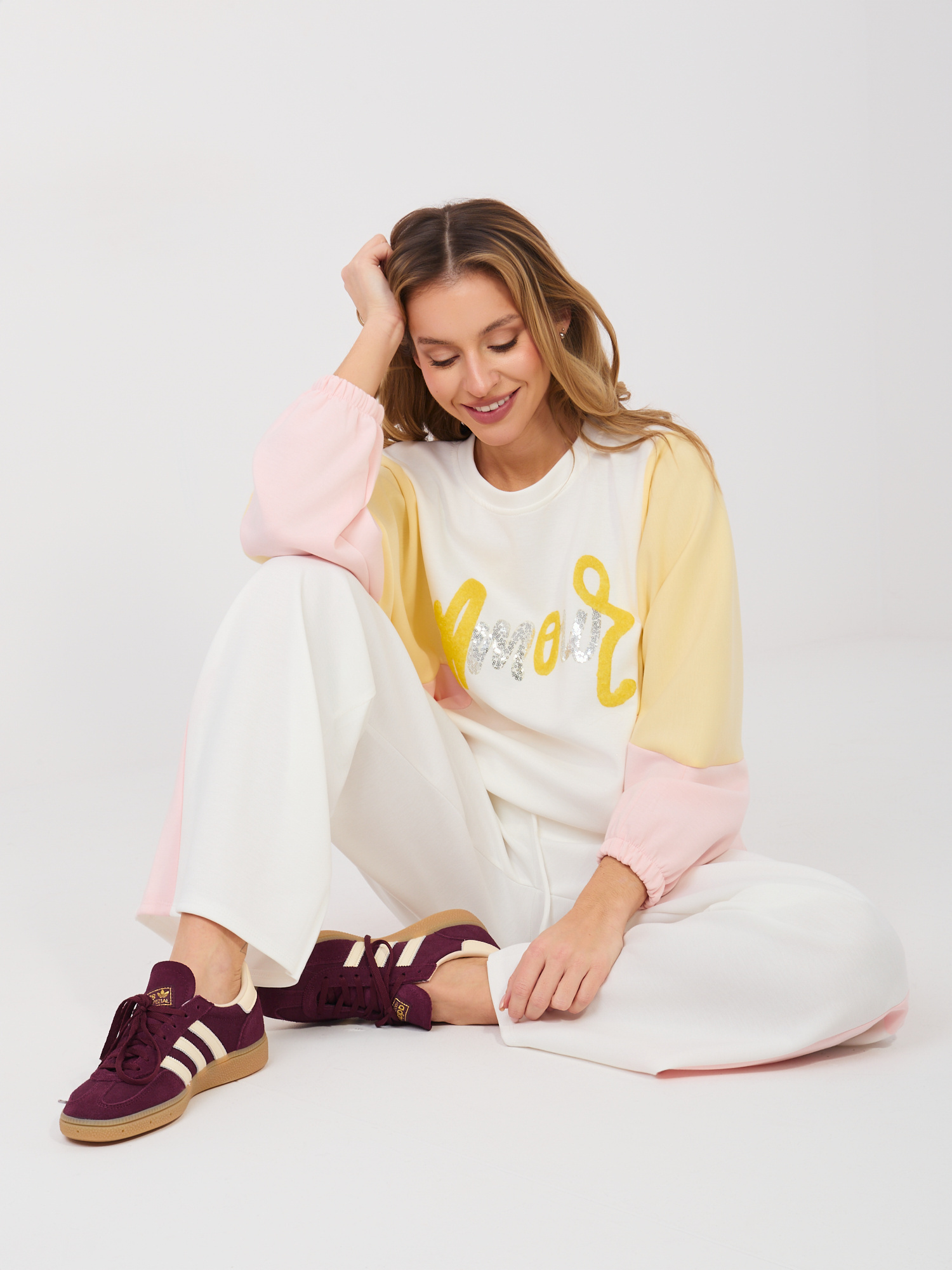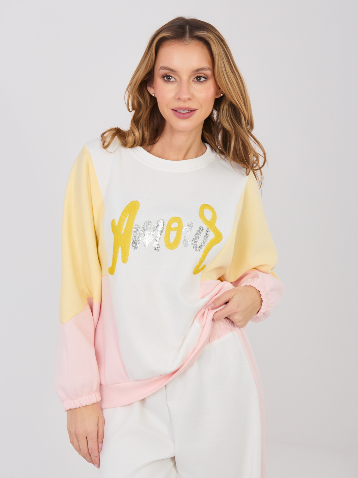 Ecru dresowy komplet z bluzą oversize RUE PARIS .
