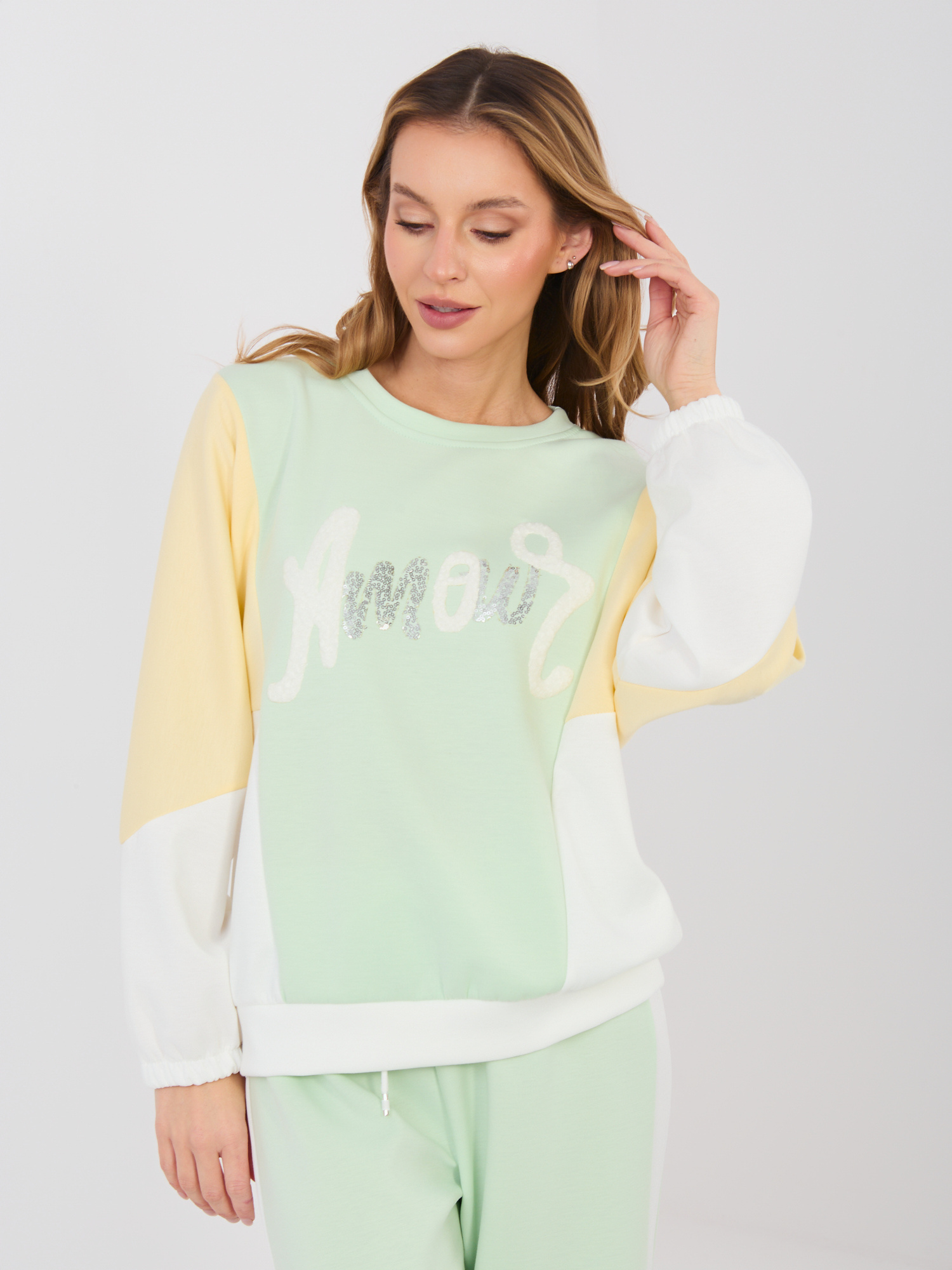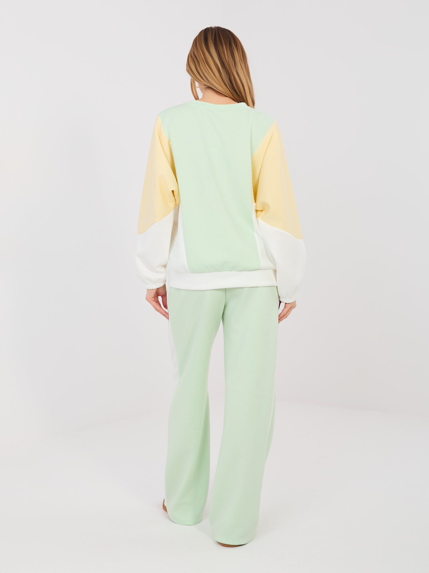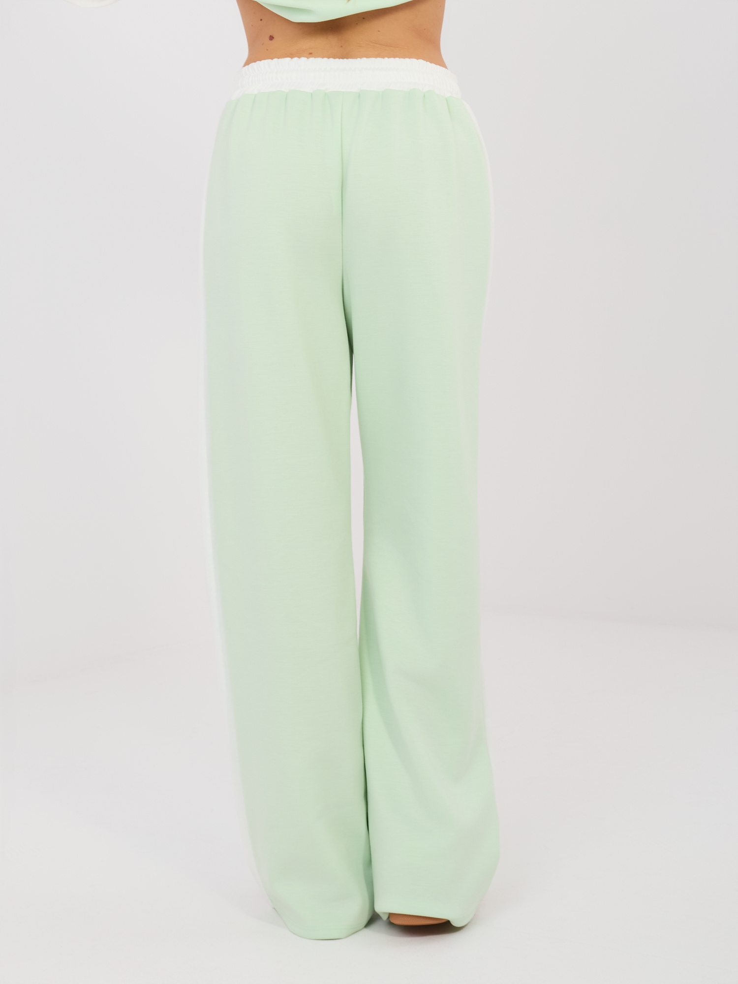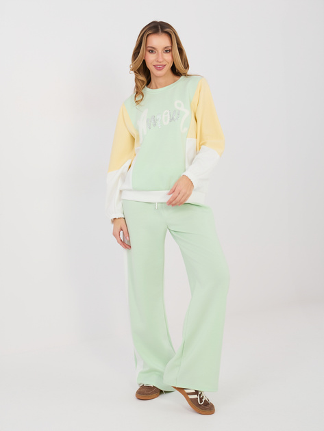 Pistacjowy kolorowy komplet z szerokimi spodniami RUE PARIS .