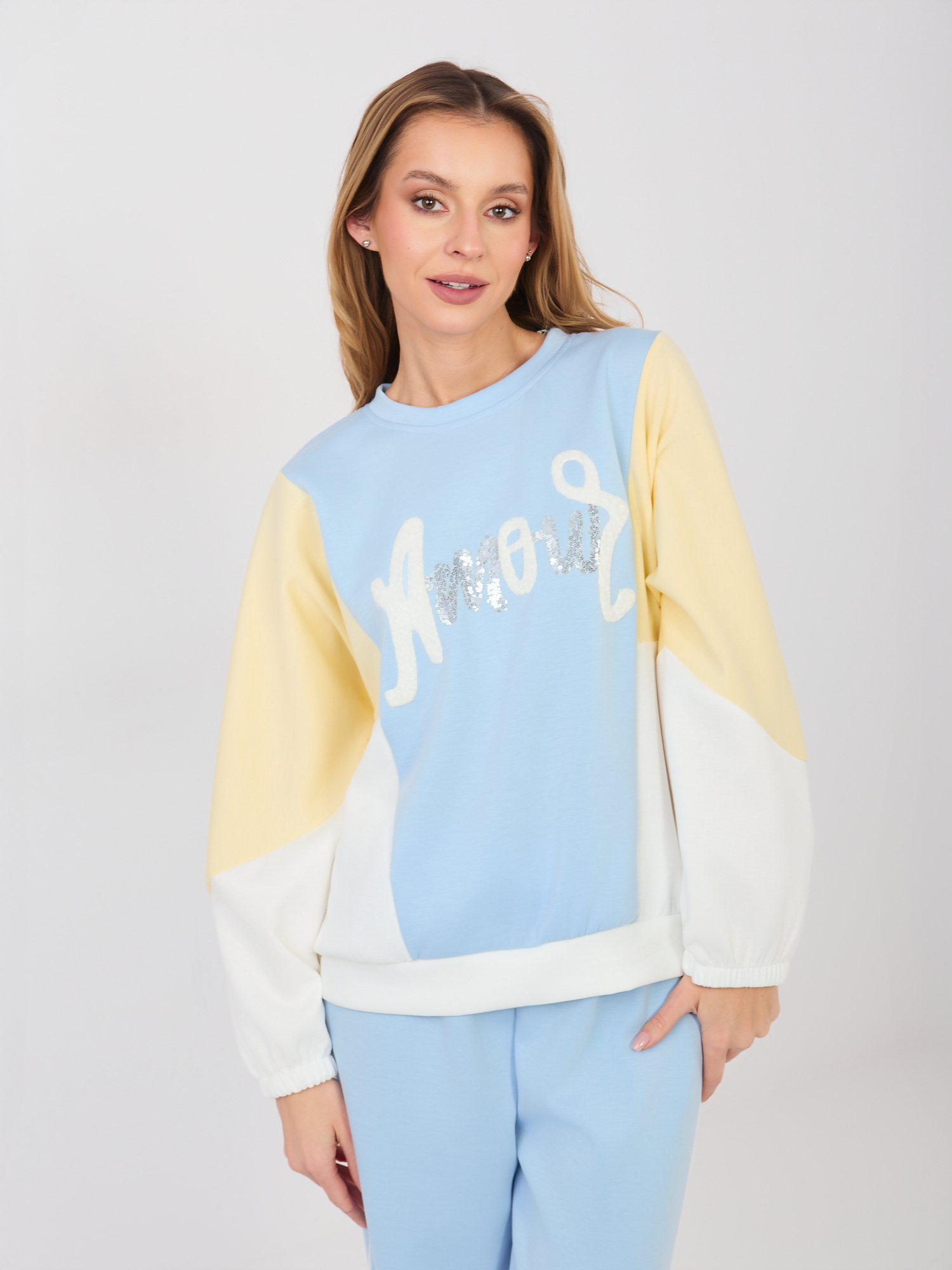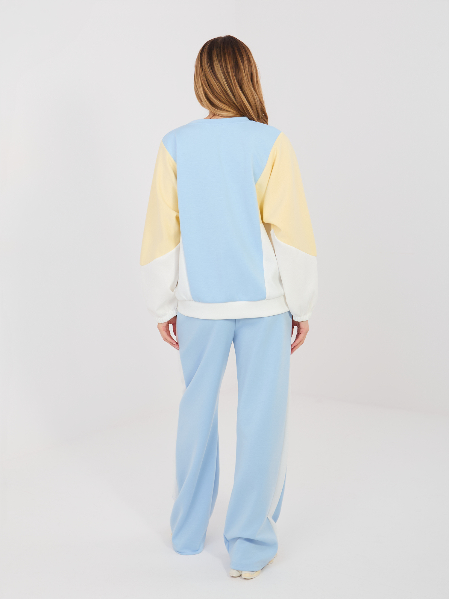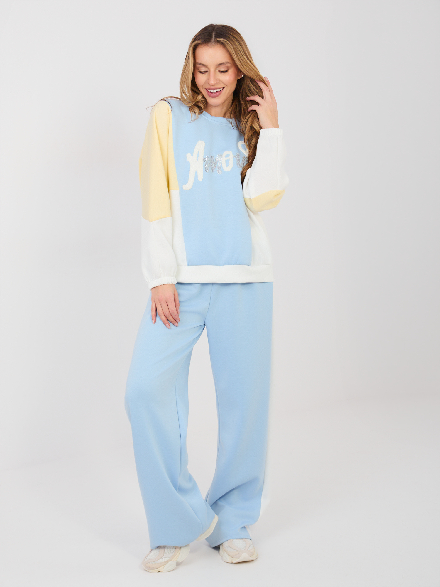 Pastelowy niebieski dresowy komplet z lampasami RUE PARIS .